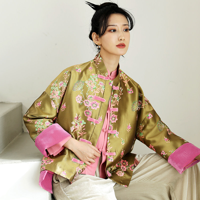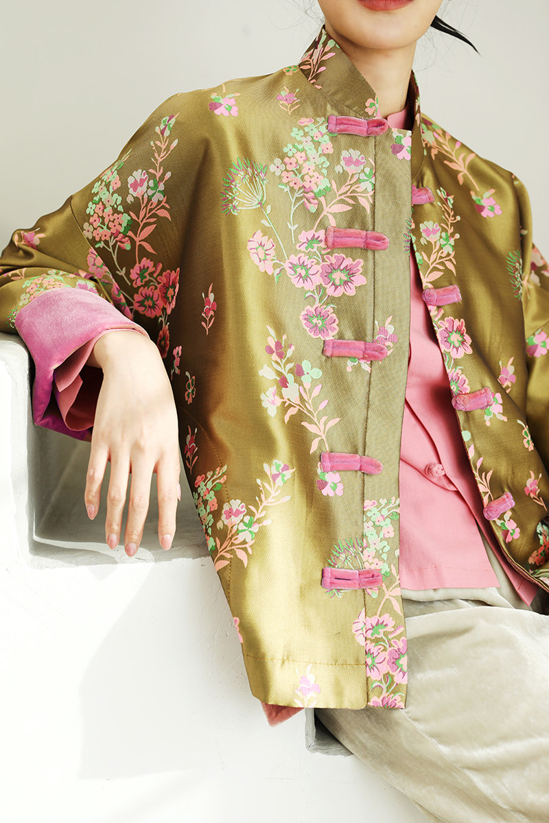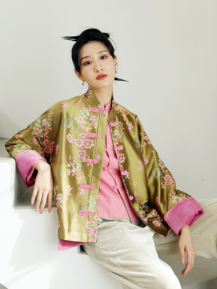 --------------------- 桃知窈窈2025春/花团锦绣 春季中式金色提花外套春款长袖 【原售价】528元 【现售价】464元 【推荐理由】