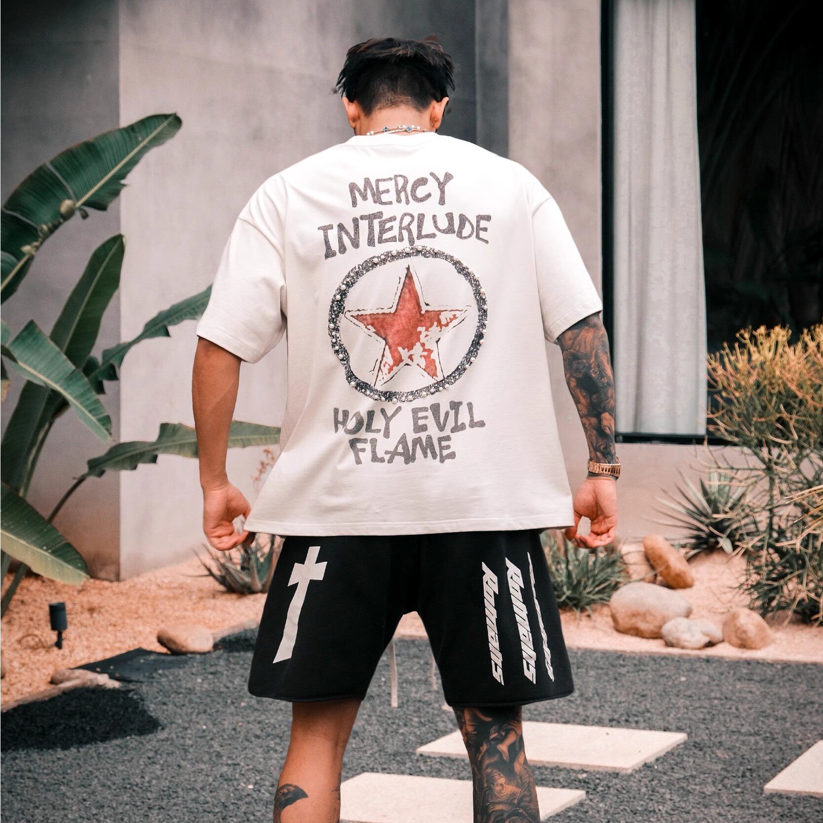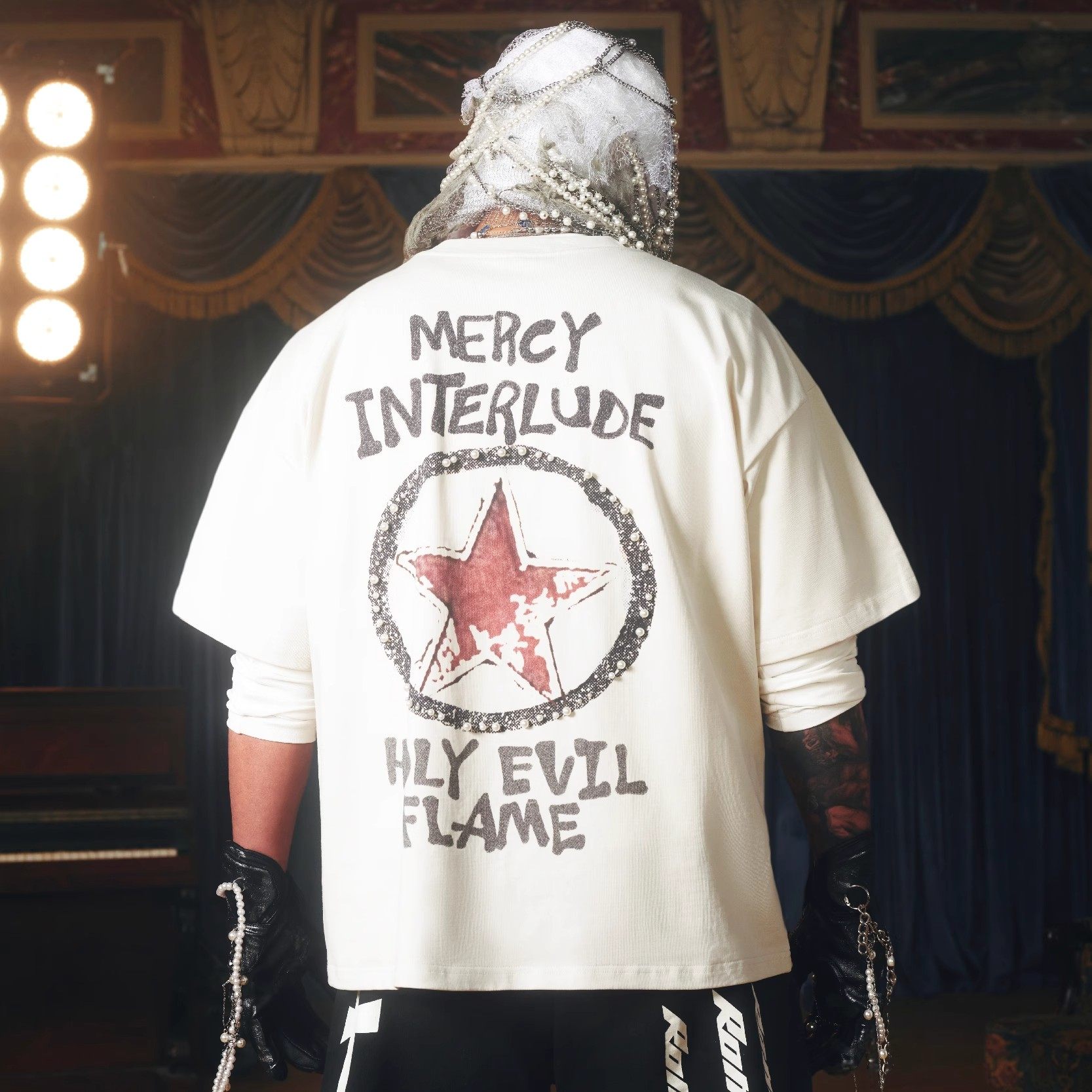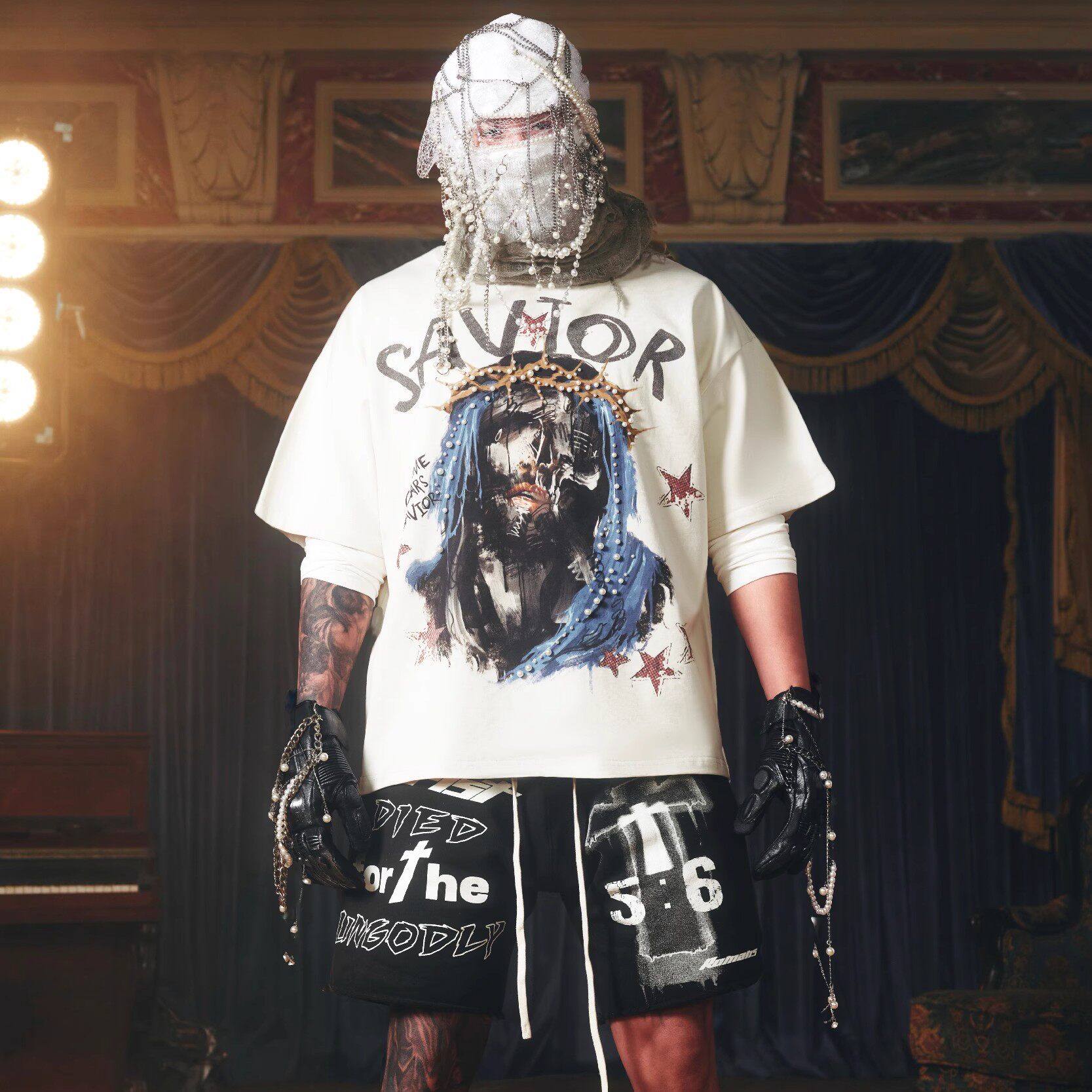 RESERFF 救赎之夜 珍珠手绘插画短袖宽松高街复古潮纯棉T恤