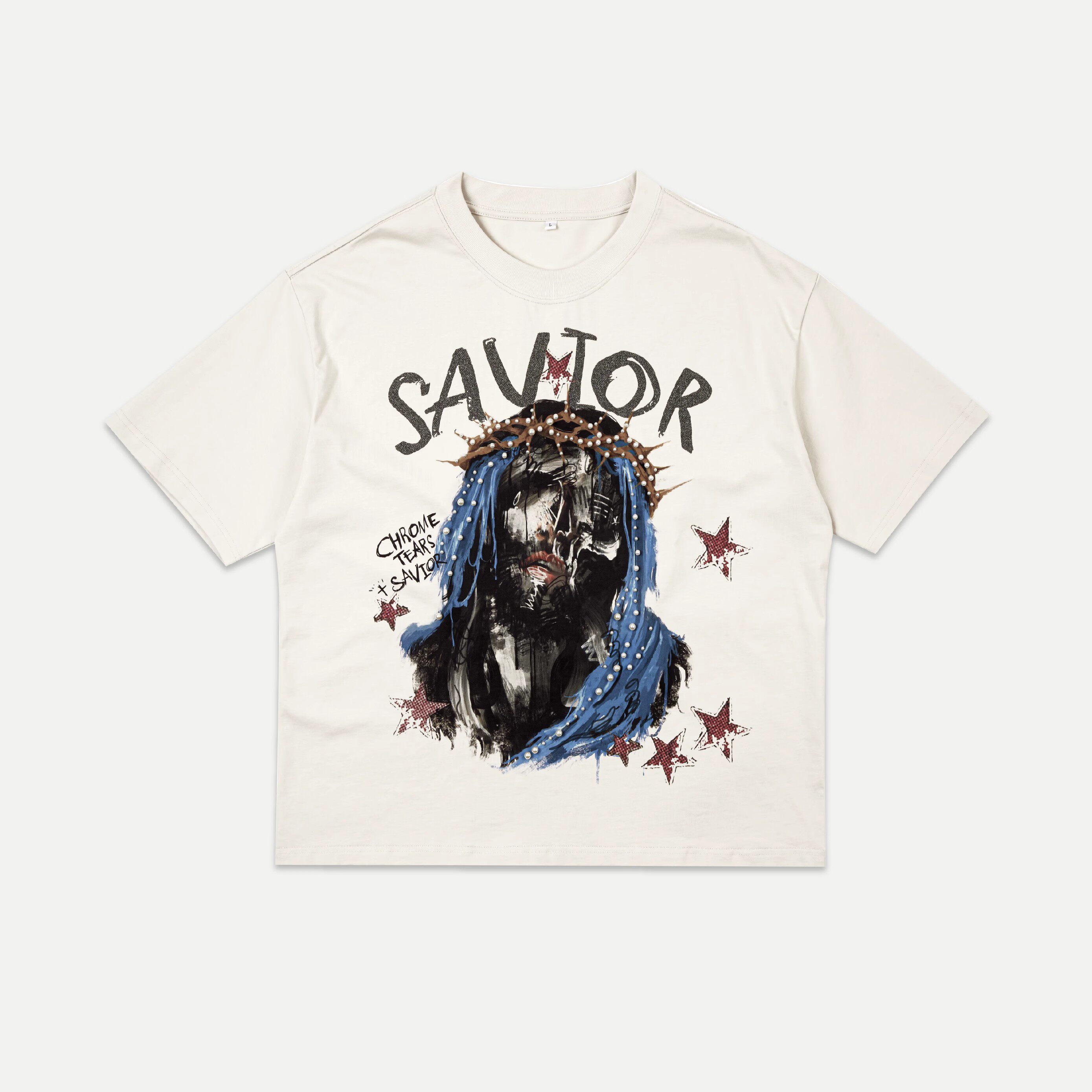 --------------------- RESERFF 救赎之夜 珍珠手绘插画短袖宽松高街复古潮纯棉T恤 【原售价】78元 【现售价】78元 【推荐理由】