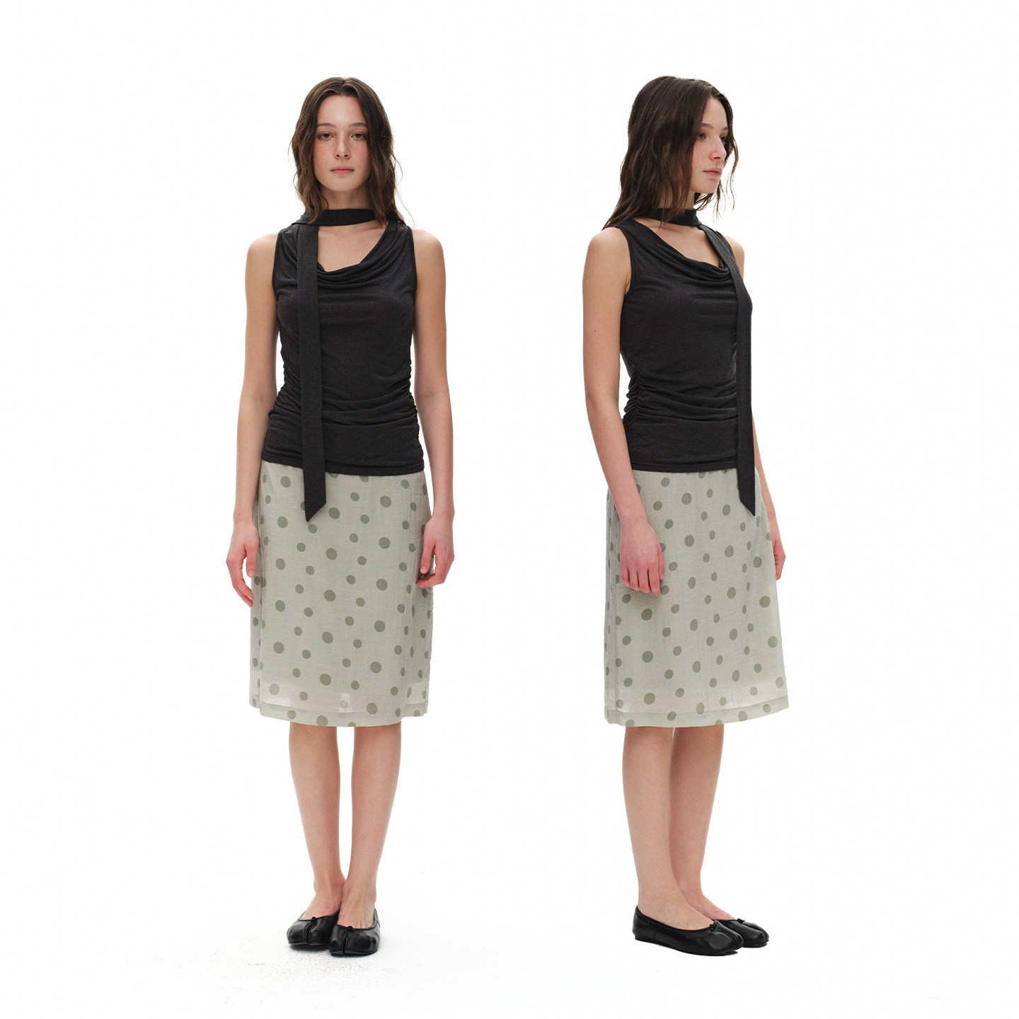ReAimNess* 清凉美波 波点半身裙双层设计度假风中长款半身裙女