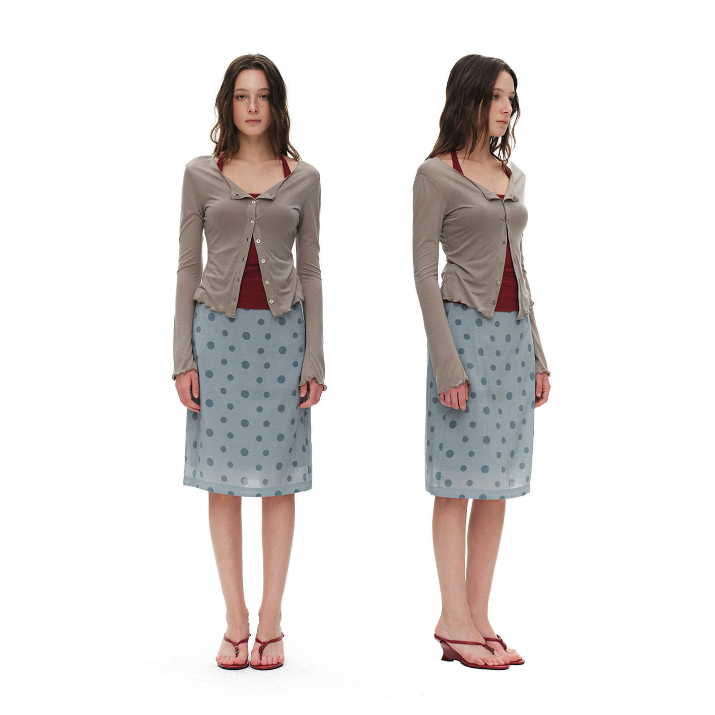--------------------- ReAimNess* 清凉美波 波点半身裙双层设计度假风中长款半身裙女 【原售价】319元 【现售价】280元 【推荐理由】