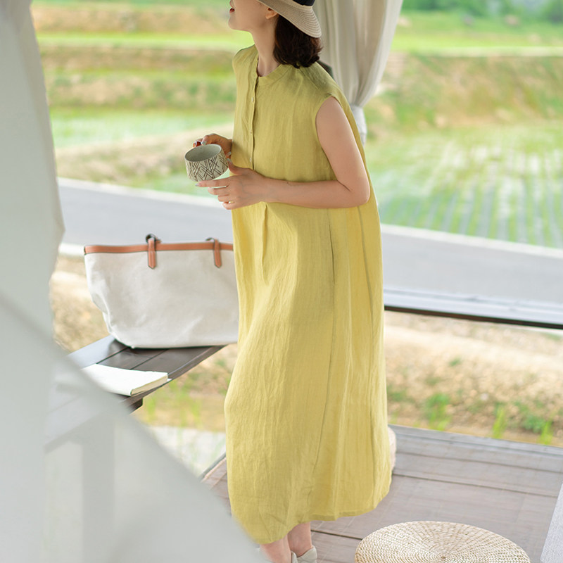 一非空间夏装新款亚麻背心连衣裙宽松显瘦文艺休闲干爽透气长裙