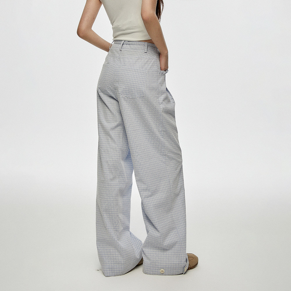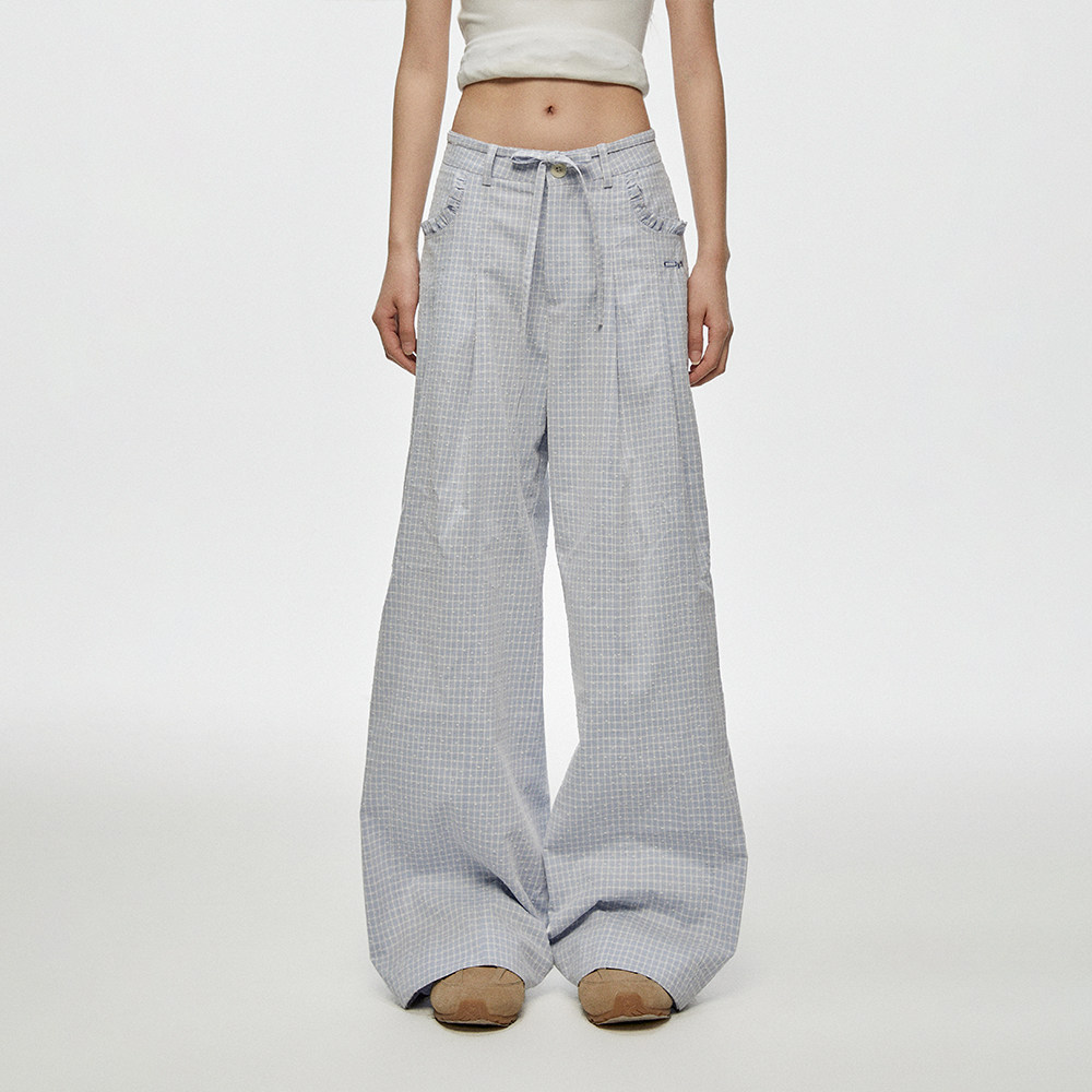 --------------------- CyNi 慵懒风宽松休闲高腰阔腿拖地熔点复纱格子裤休闲长裤女 【原售价】259元 【现售价】259元 【推荐理由】