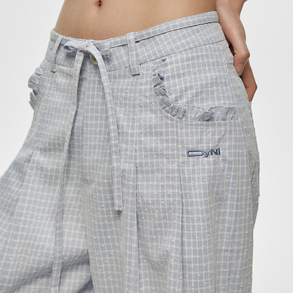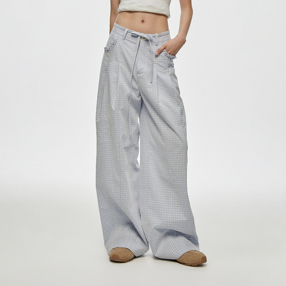 CyNi 慵懒风宽松休闲高腰阔腿拖地熔点复纱格子裤休闲长裤女