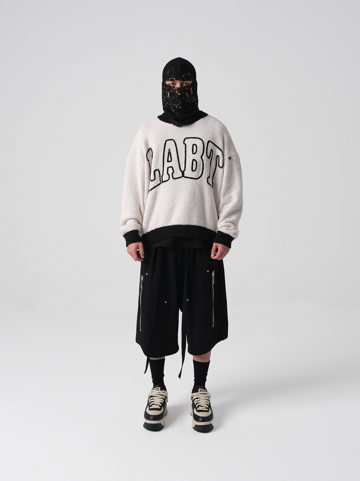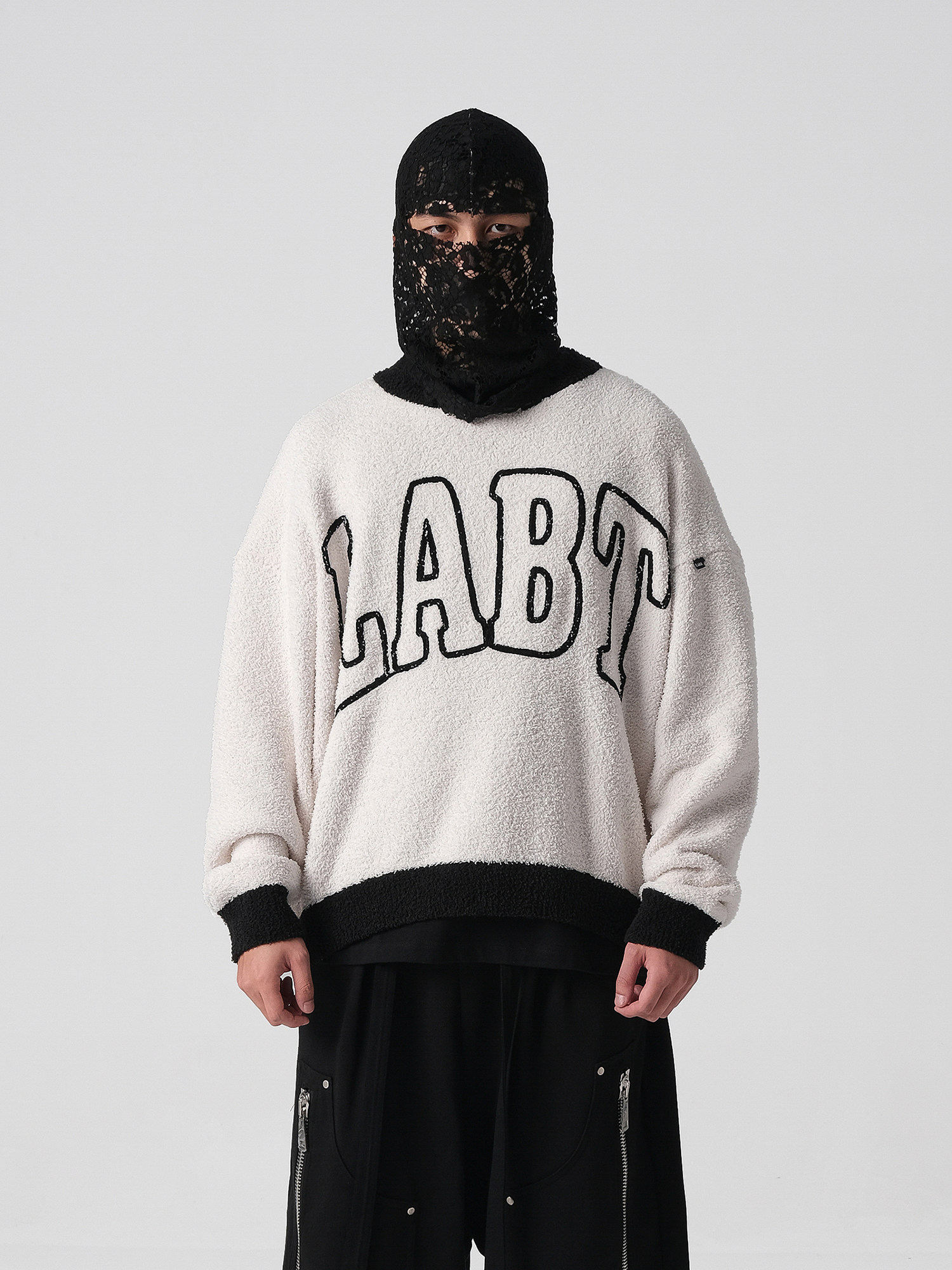 【极限清仓】LABT加厚黑白拼色绒感宽松休闲长袖提花圆领套头毛衣