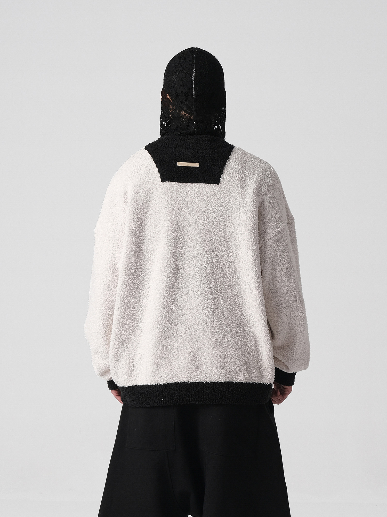 --------------------- 【极限清仓】LABT加厚黑白拼色绒感宽松休闲长袖提花圆领套头毛衣 【原售价】399元 【现售价】87.1元 【推荐理由】
