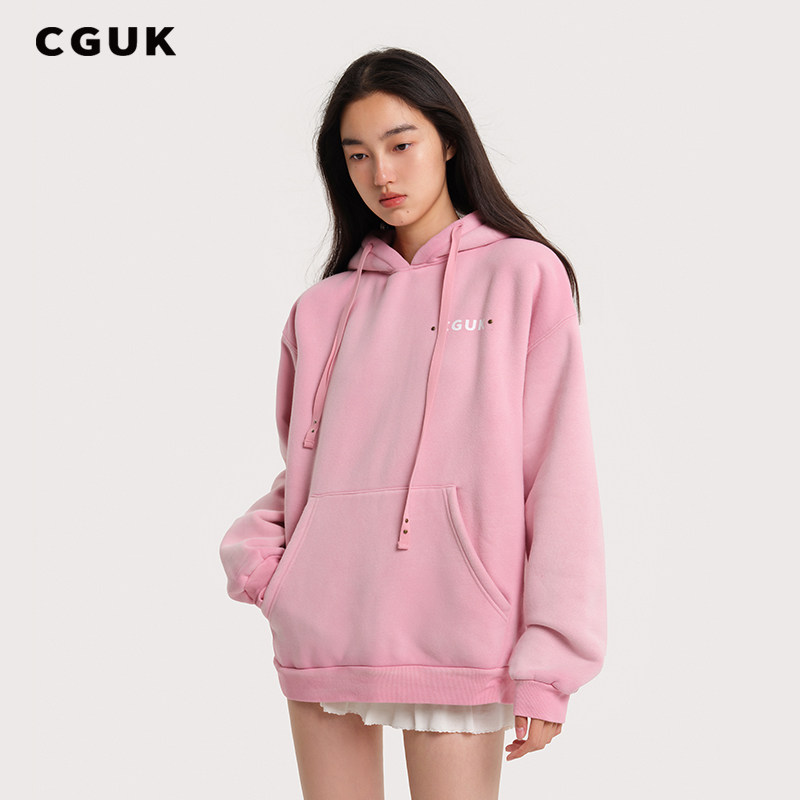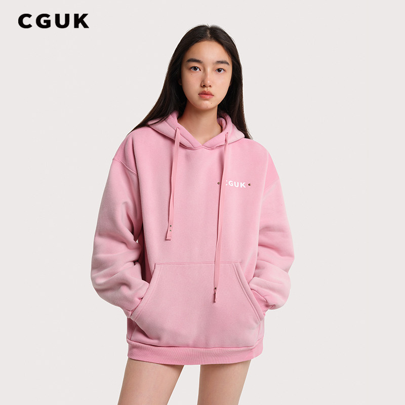 【胡嘉欣同款】CGUK中性粉色卫衣 百搭休闲男女同款连帽重洗卫衣