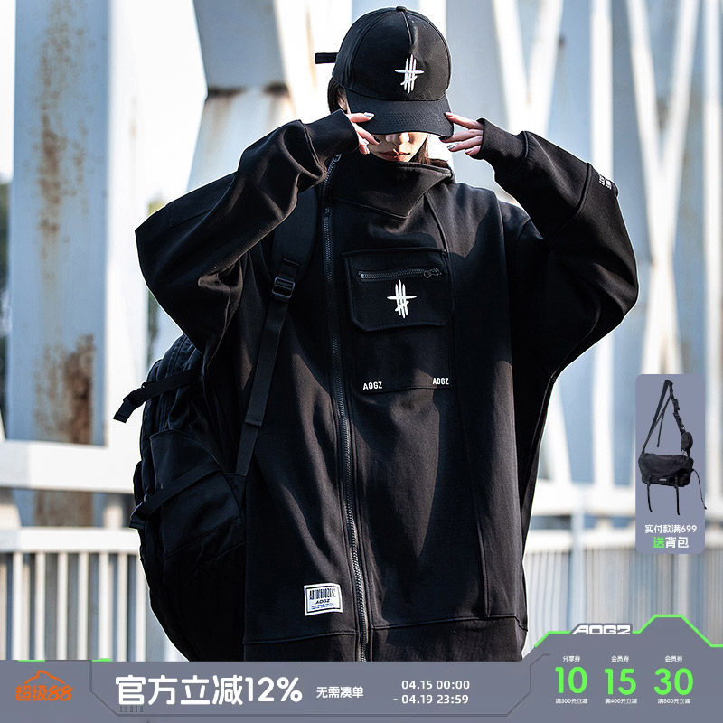 淘宝AOGZ国潮牌重磅卫衣男生春秋季新款宽松连帽拉链开衫情侣工装外套