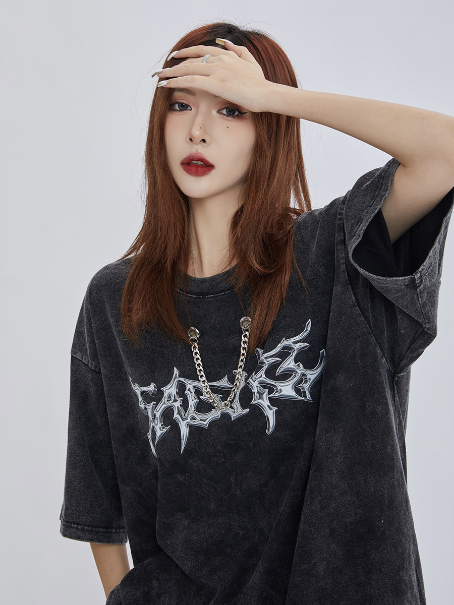 【潮WOO专属】SLASHEE原创国潮水洗链条印花短袖休闲中性情侣t恤