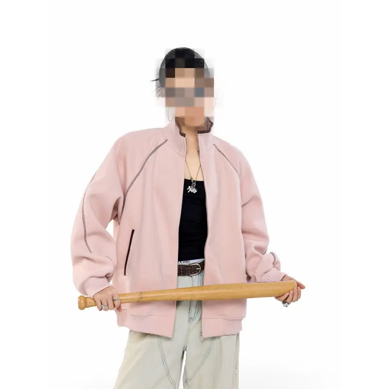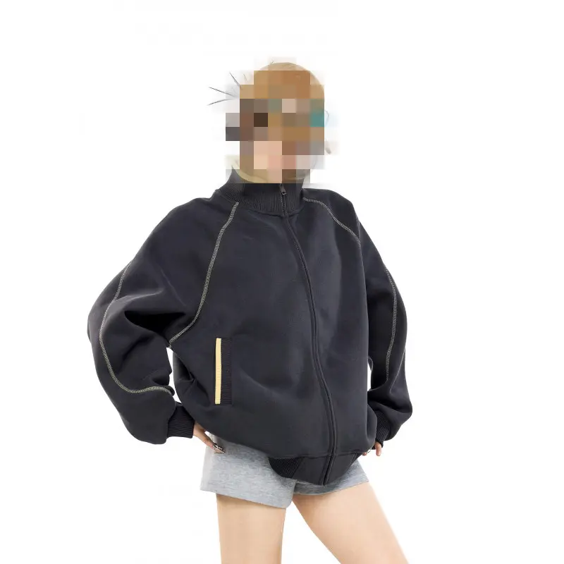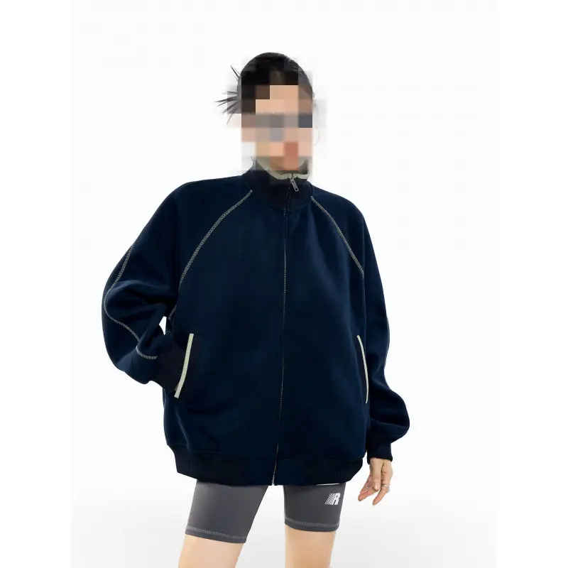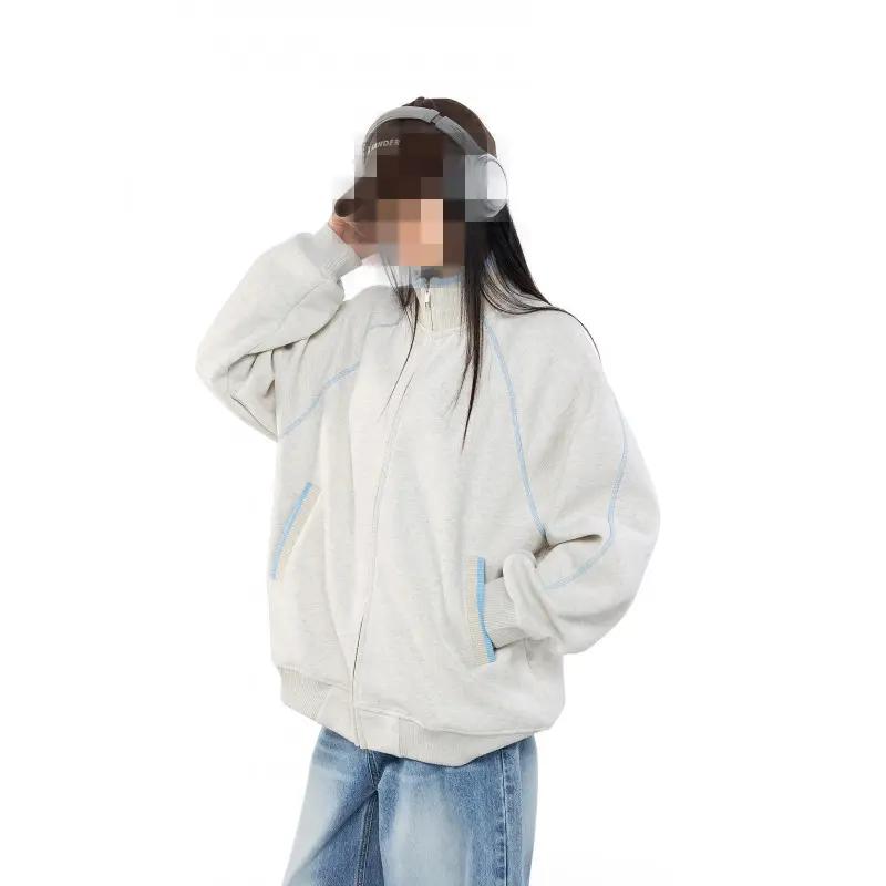 春季新款重磅撞色拼接卫衣男女宽松休闲男装立领开衫春装情侣外套