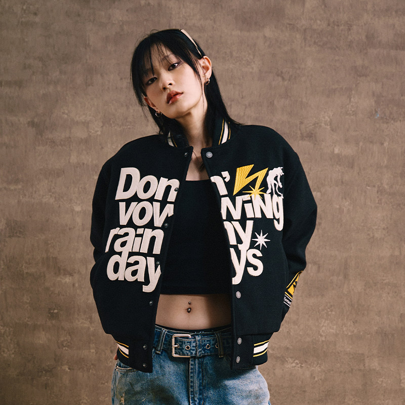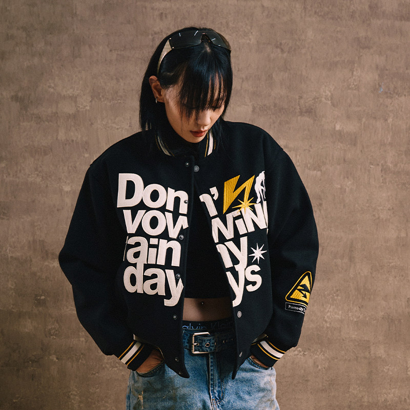 Remedy秋冬款国潮闪电誓言刺绣字母夹克外套美式街头夹棉棒球服男