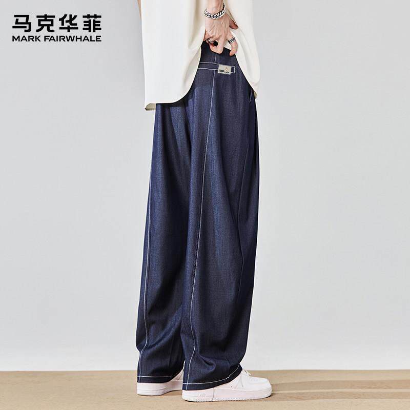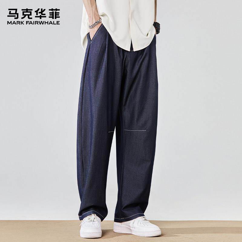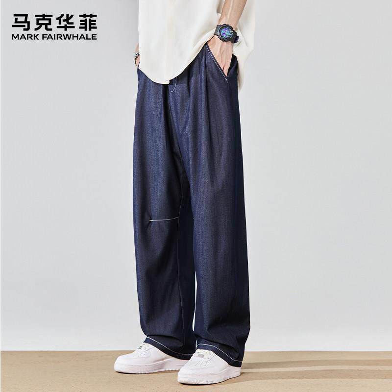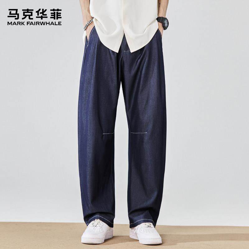 马克华菲莱赛尔天丝牛仔裤男士夏季薄款直筒弯刀裤子垂感阔腿长裤