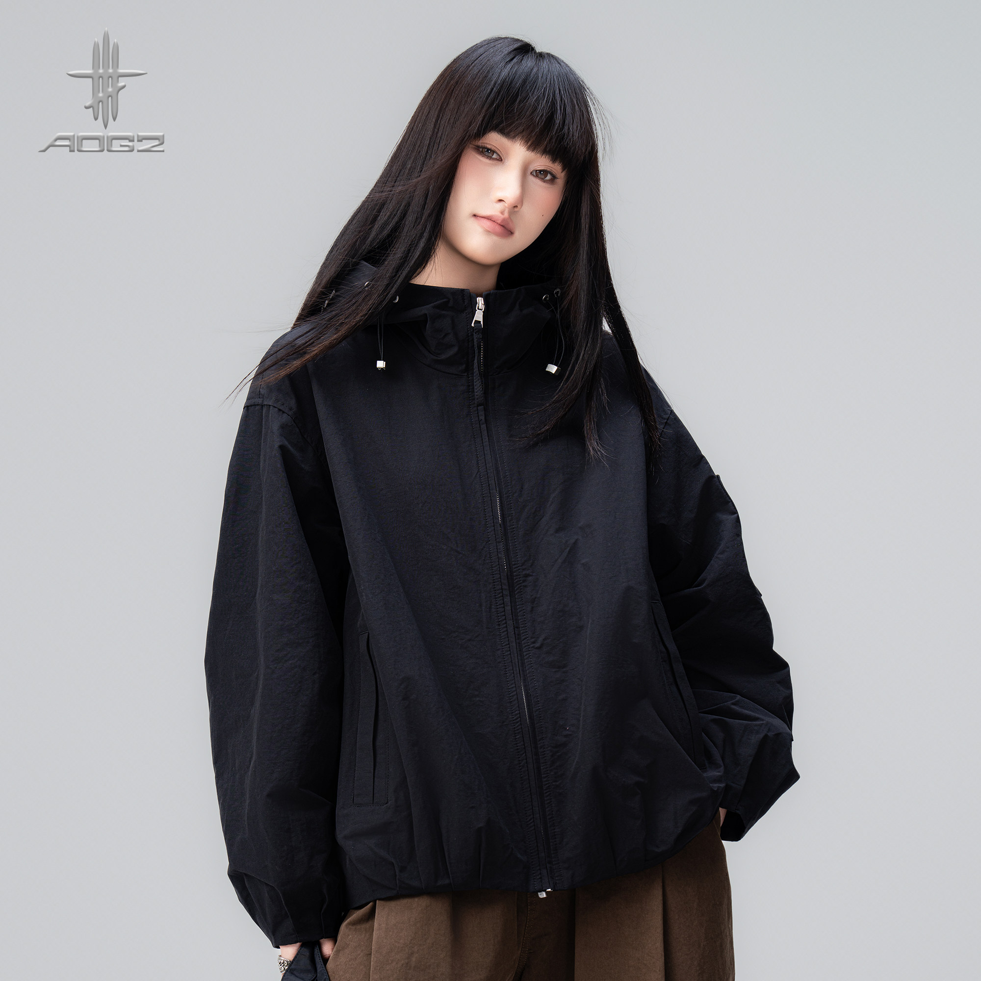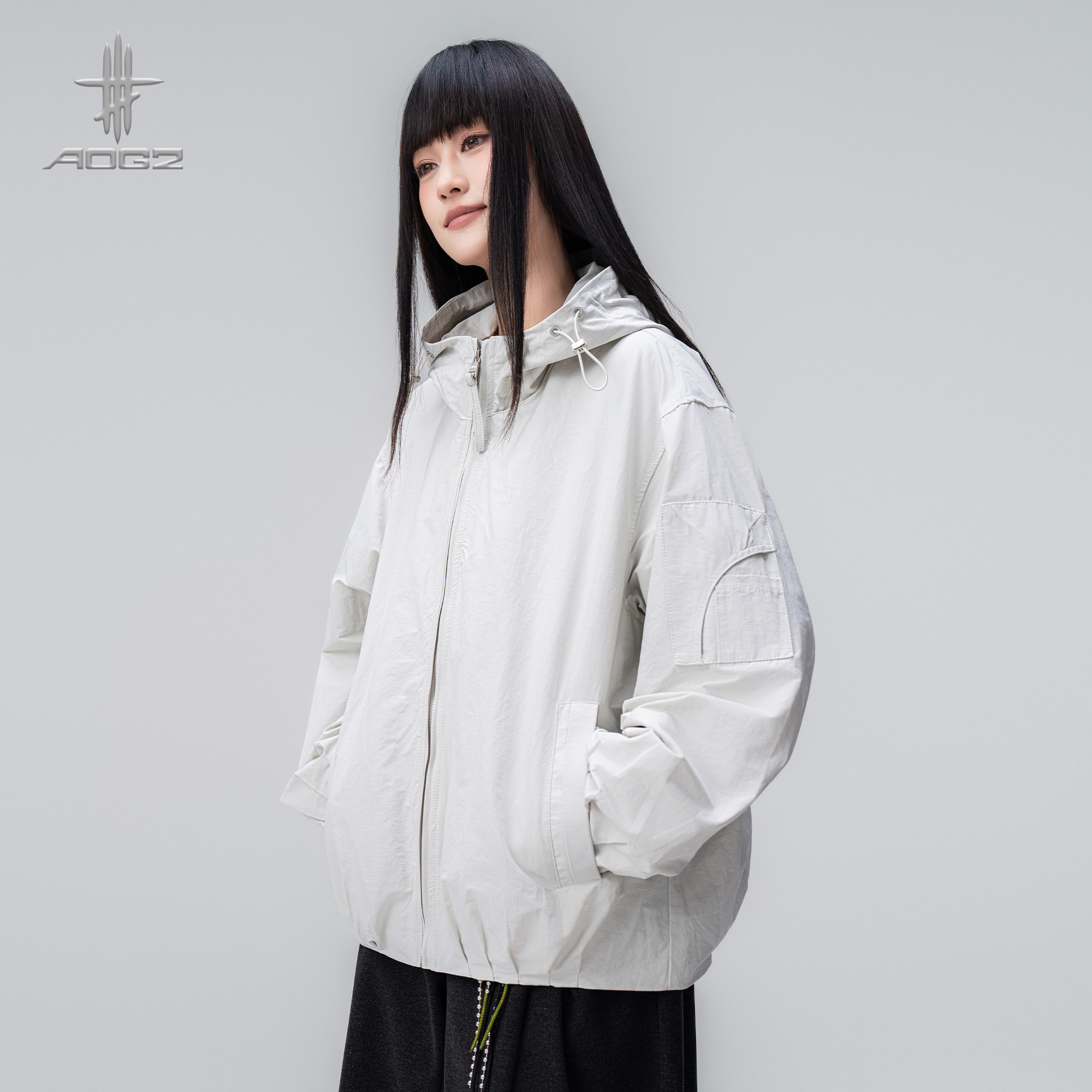 AOGZ国潮牌美式连帽冲锋夹克男女2026春季新款情侣装户外解构外套
