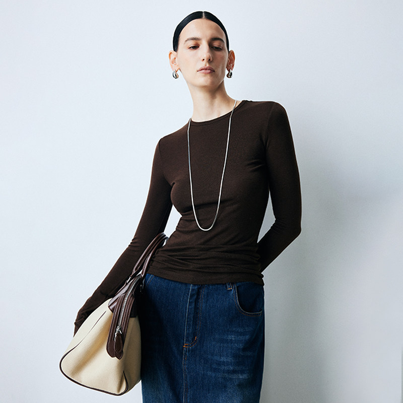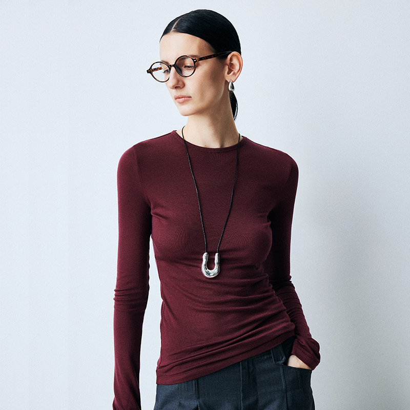 帕罗含羊毛红茶风微弹保暖内搭纯色圆领修身薄款针织打底衫女