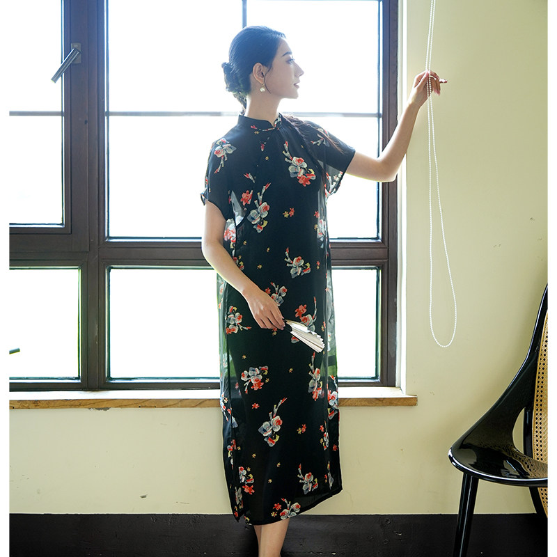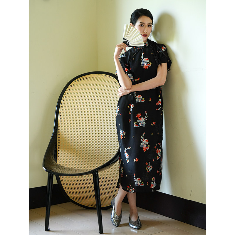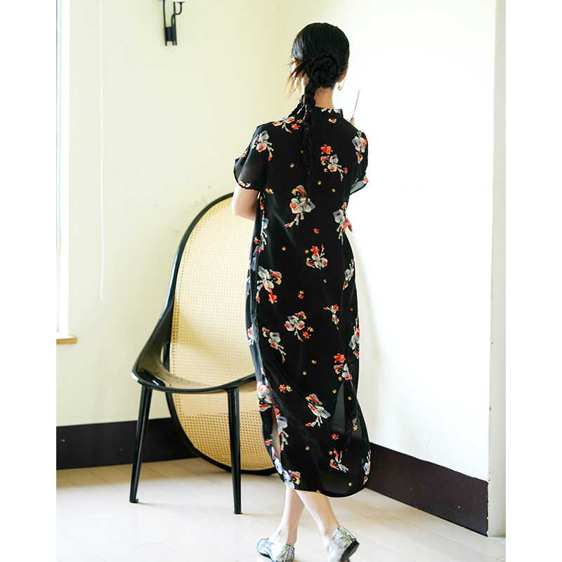 淘宝桃知窈窈2024夏/盈香 中式文艺碎花短袖立领宽松改良旗袍裙