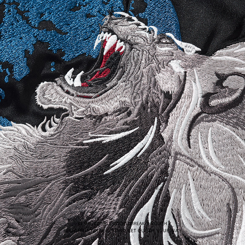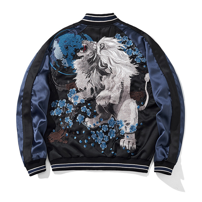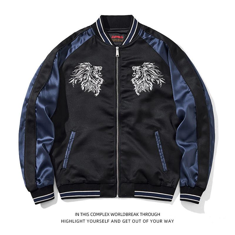 雄狮刺绣重工中国风夹克男个性狮子棒球服霸气外套横须贺上衣国潮