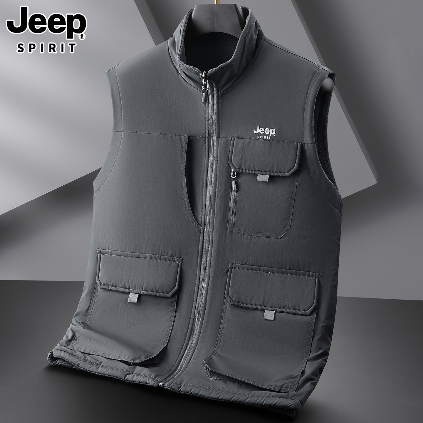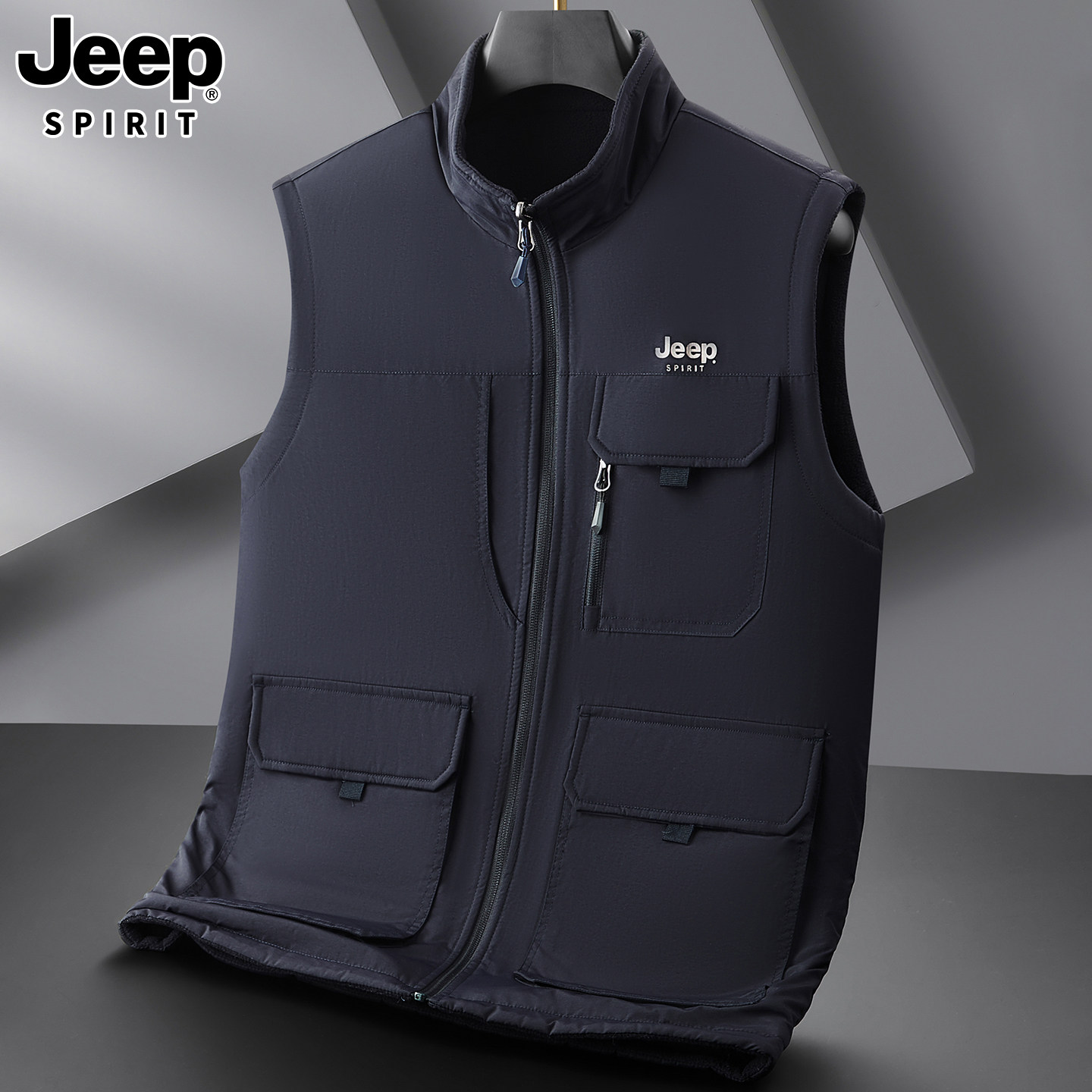 新款男士马甲外套户外休闲商务秋冬季摇粒绒加绒