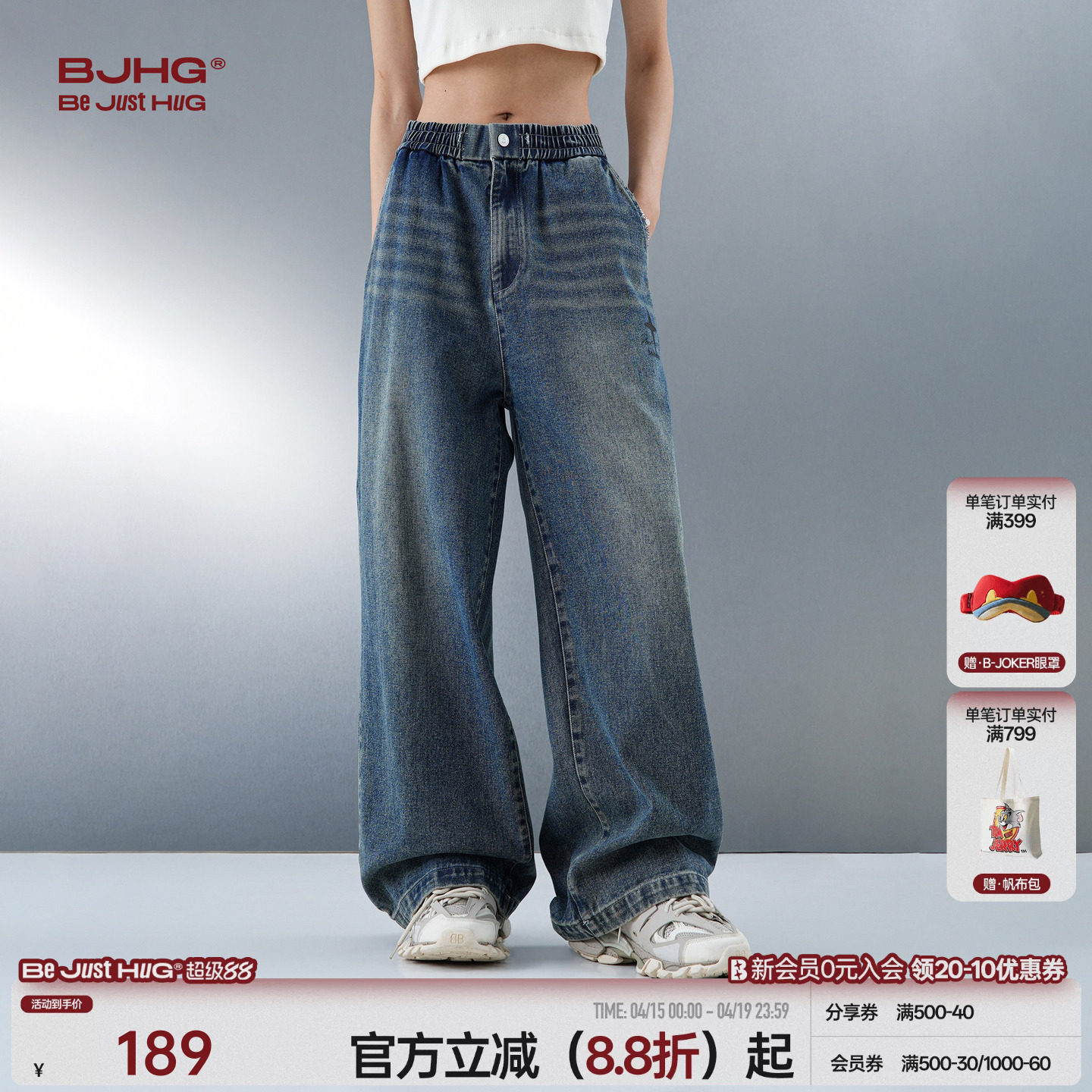 --------------------- BJHG不计后果美式直筒牛仔裤男款春季新款宽松复古阔腿休闲裤子女 【原售价】289元 【现售价】189元 【推荐理由】