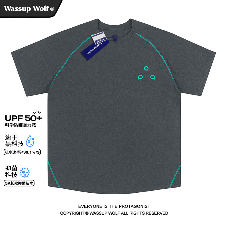 Wassup Wolf速干抗菌哈苏线短袖T恤男国潮牌宽松夏季户外运动上衣