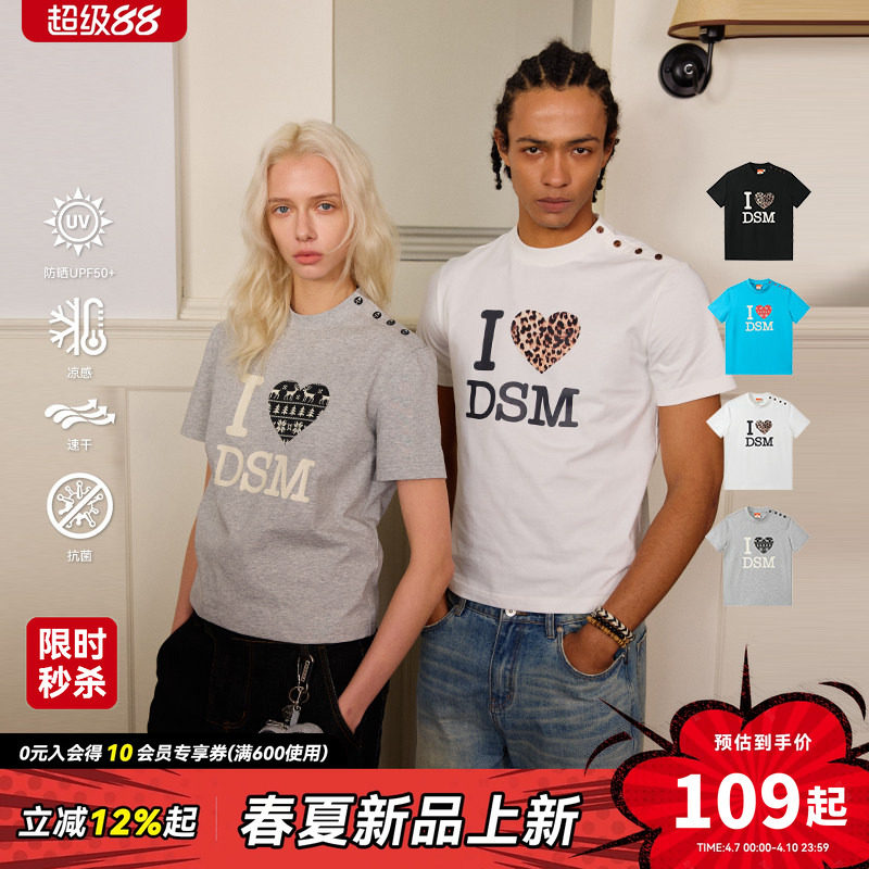 --------------------- DONSMOKE豹纹费尔岛爱心印花速干短袖T恤正肩纽扣设计感防晒上衣 【原售价】335元 【现售价】108.88元 【推荐理由】