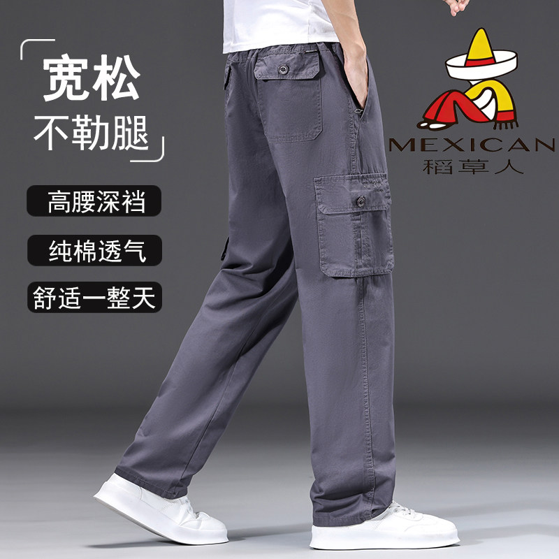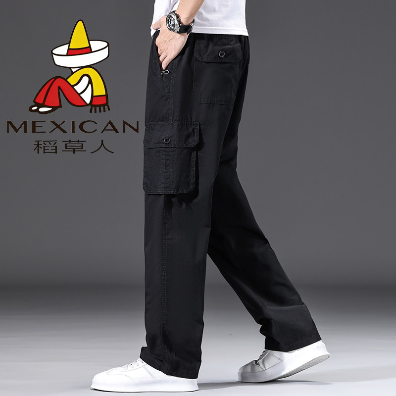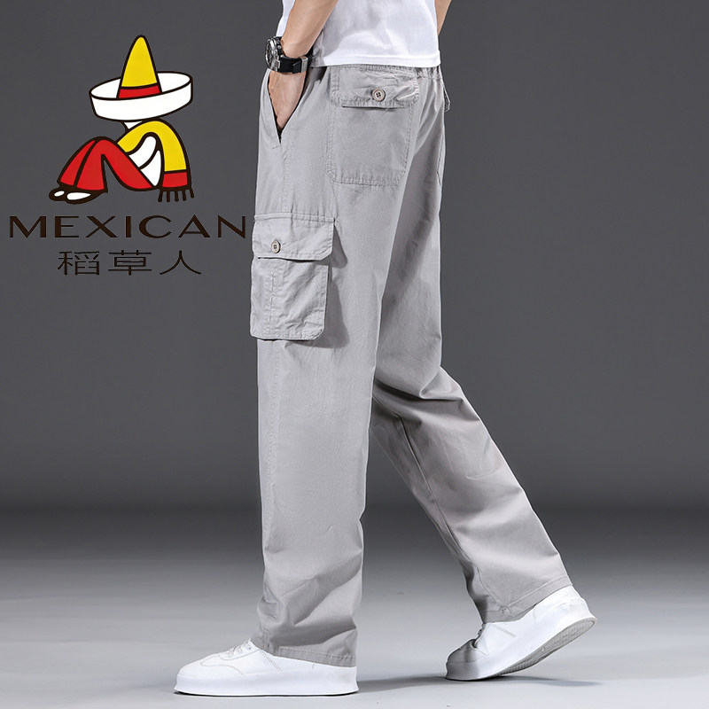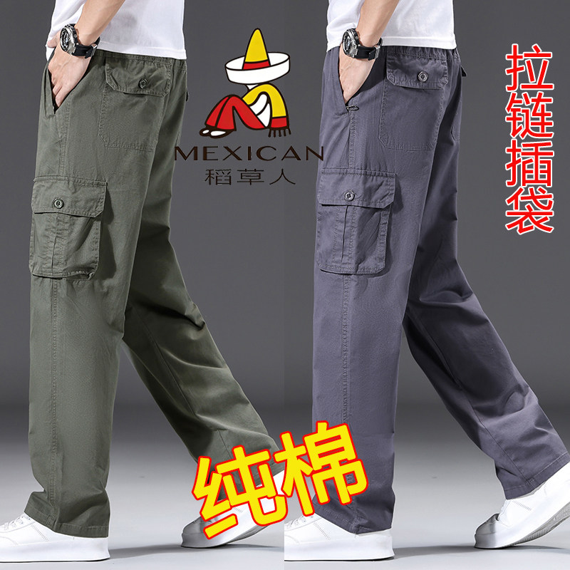 稻草人男士纯棉工装裤多口袋户外直筒裤潮流宽松加肥大码休闲长裤