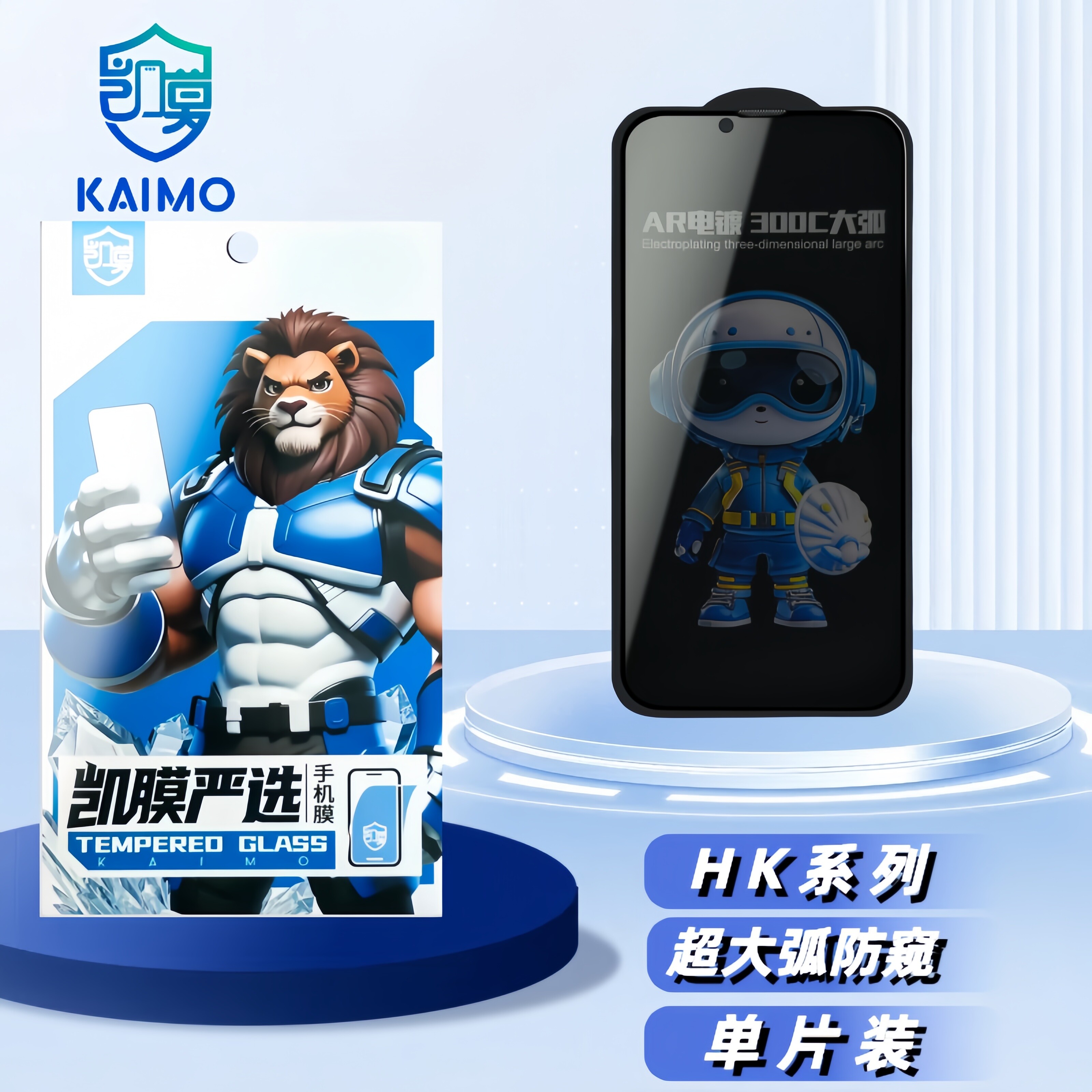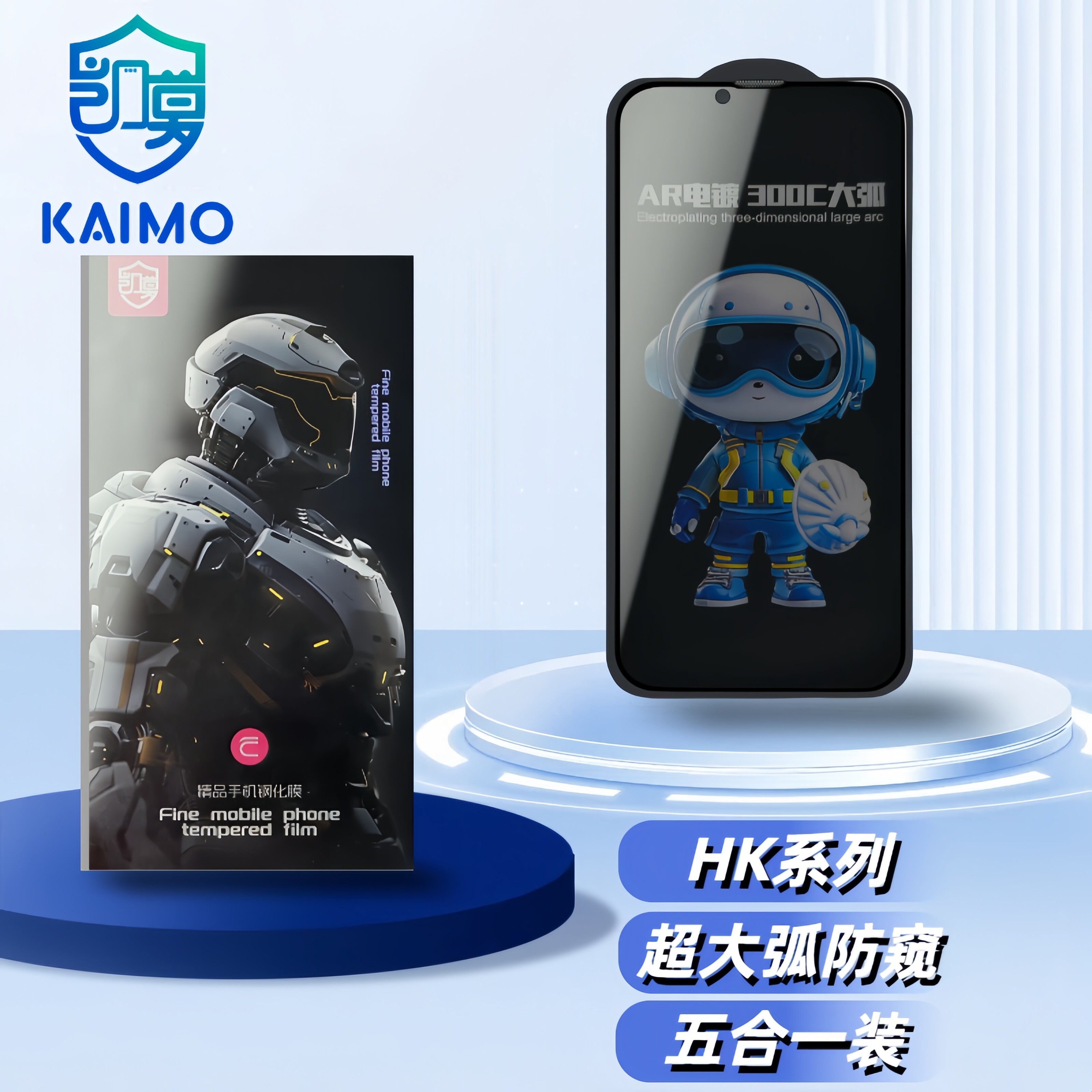 HK系列 iPhone14 15 16手机钢化膜 4D超大弧电镀防窥O型对折超强钢化膜苹果扫码找膜膜法箱厂家直销批发