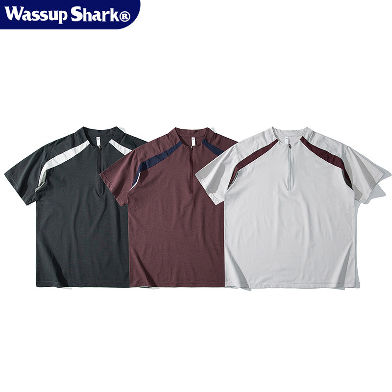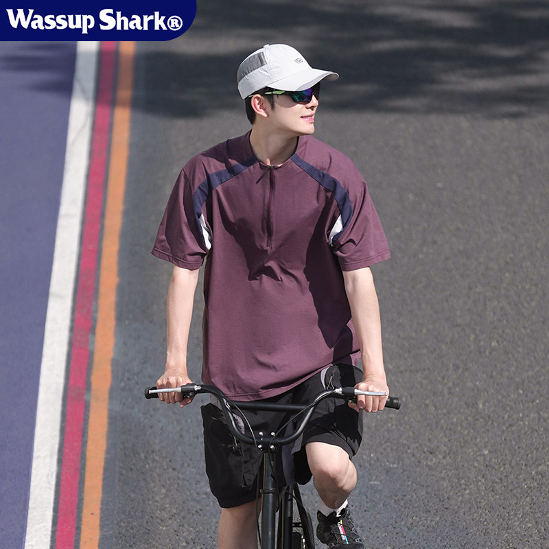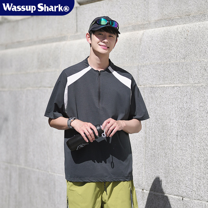 Wassup Shark拼色速干半拉链短袖男士夏季户外时尚百搭运动上衣潮