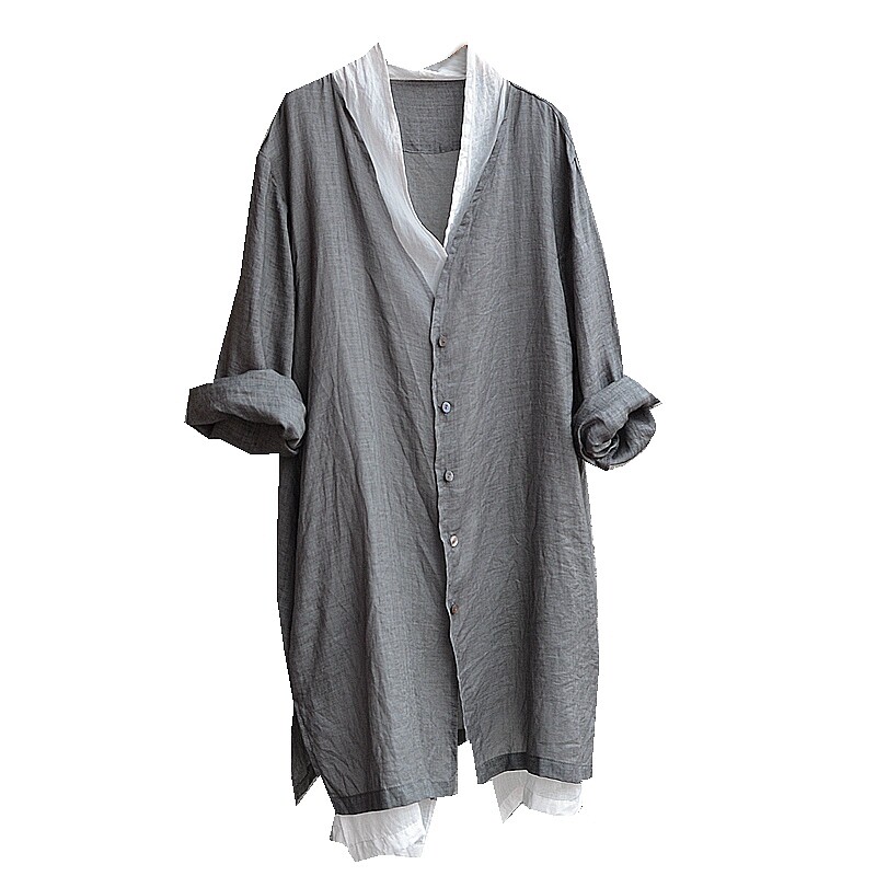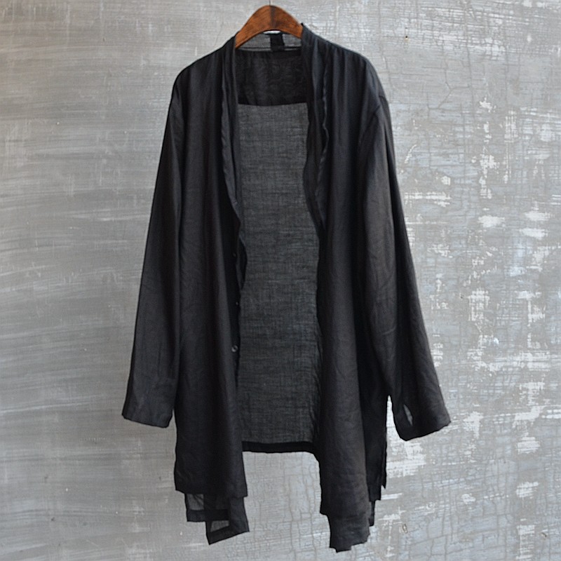 中国风中长款苎麻休闲披肩汉服假两件外套防晒夏季时尚青春流行帅