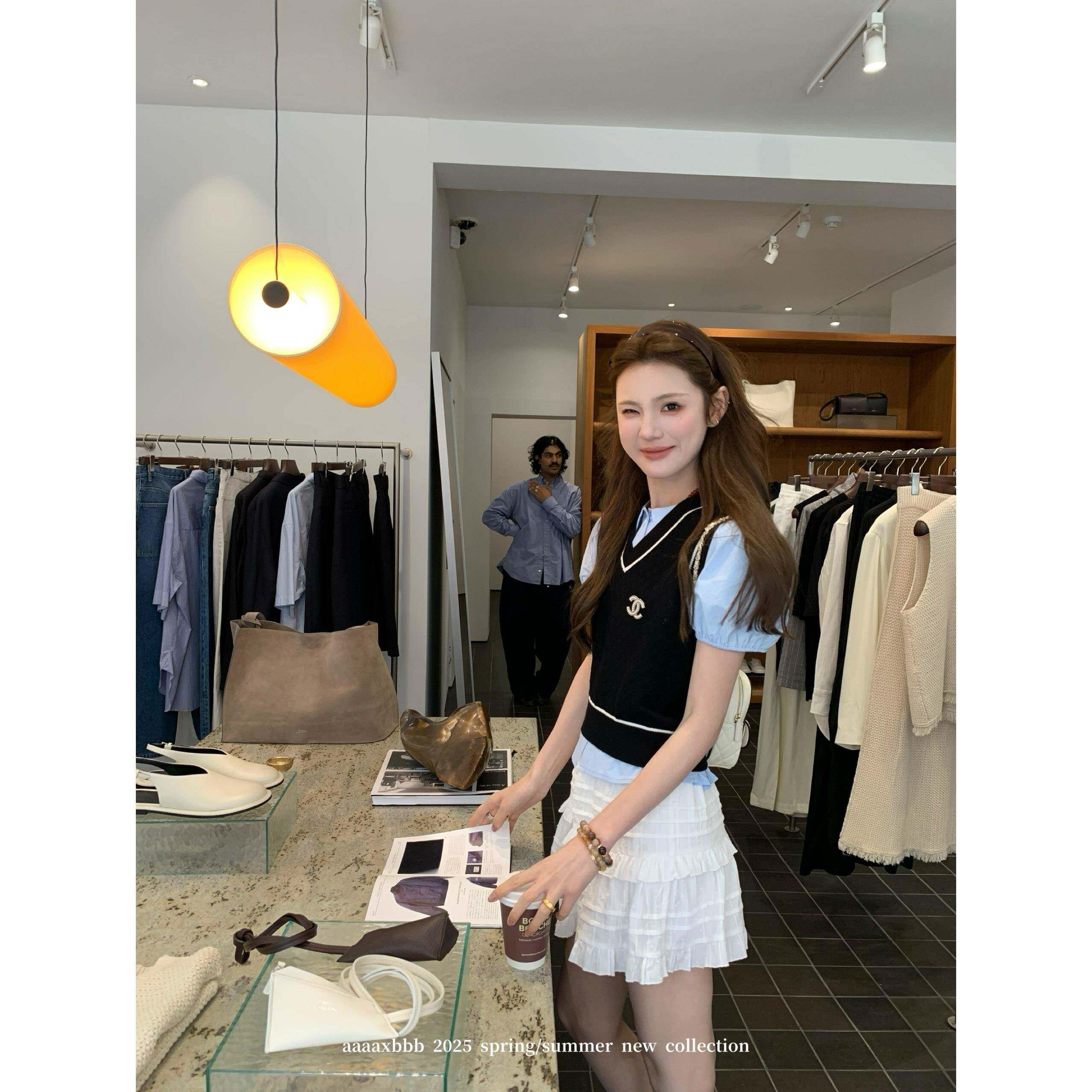 --------------------- aaaaxbbb 圣托 托里尼蓝窗 衬衫背心套装蓝色刺绣上衣短袖女针织 【原售价】716元 【现售价】716元 【推荐理由】