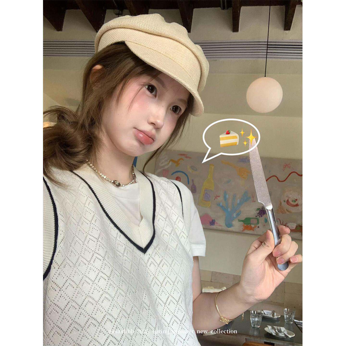 aaaaxbbb 圣托 托里尼蓝窗 衬衫背心套装蓝色刺绣上衣短袖女针织