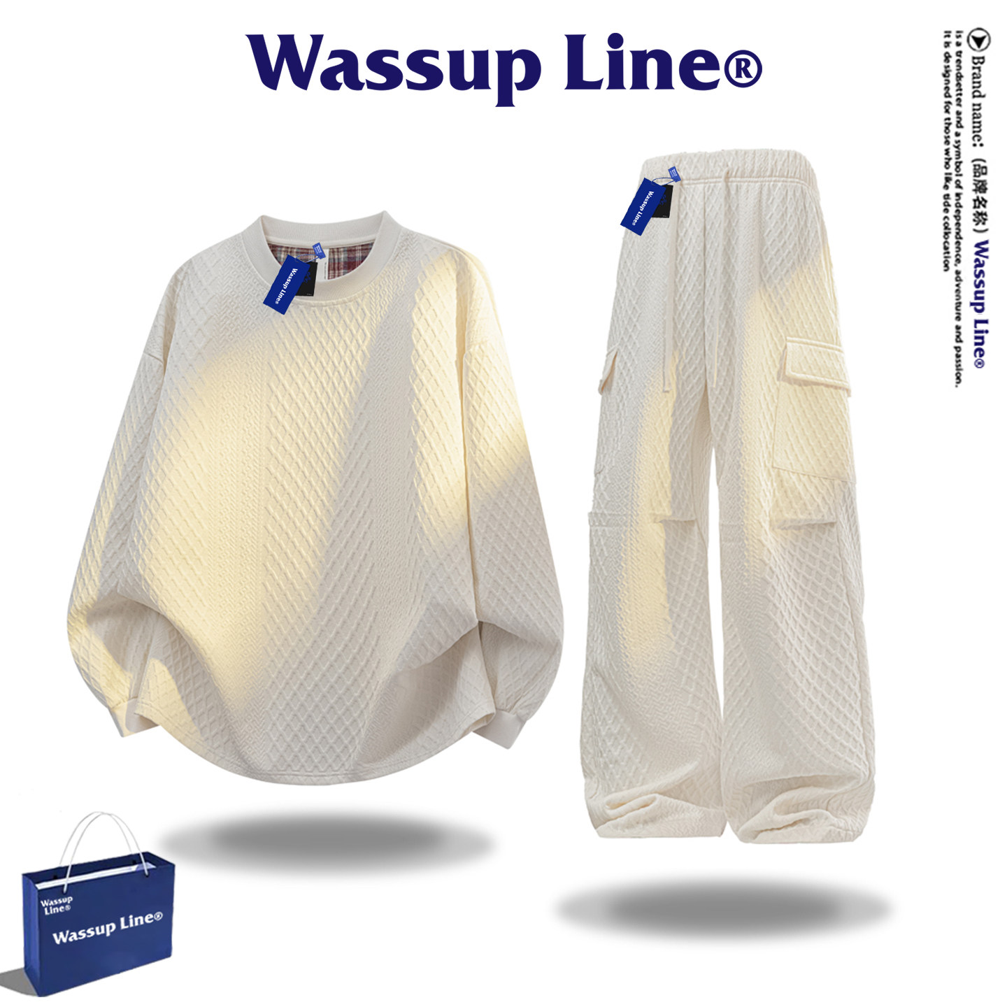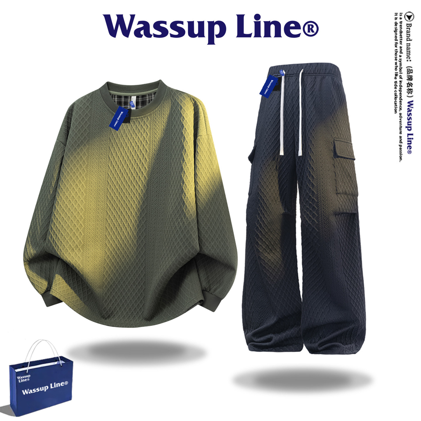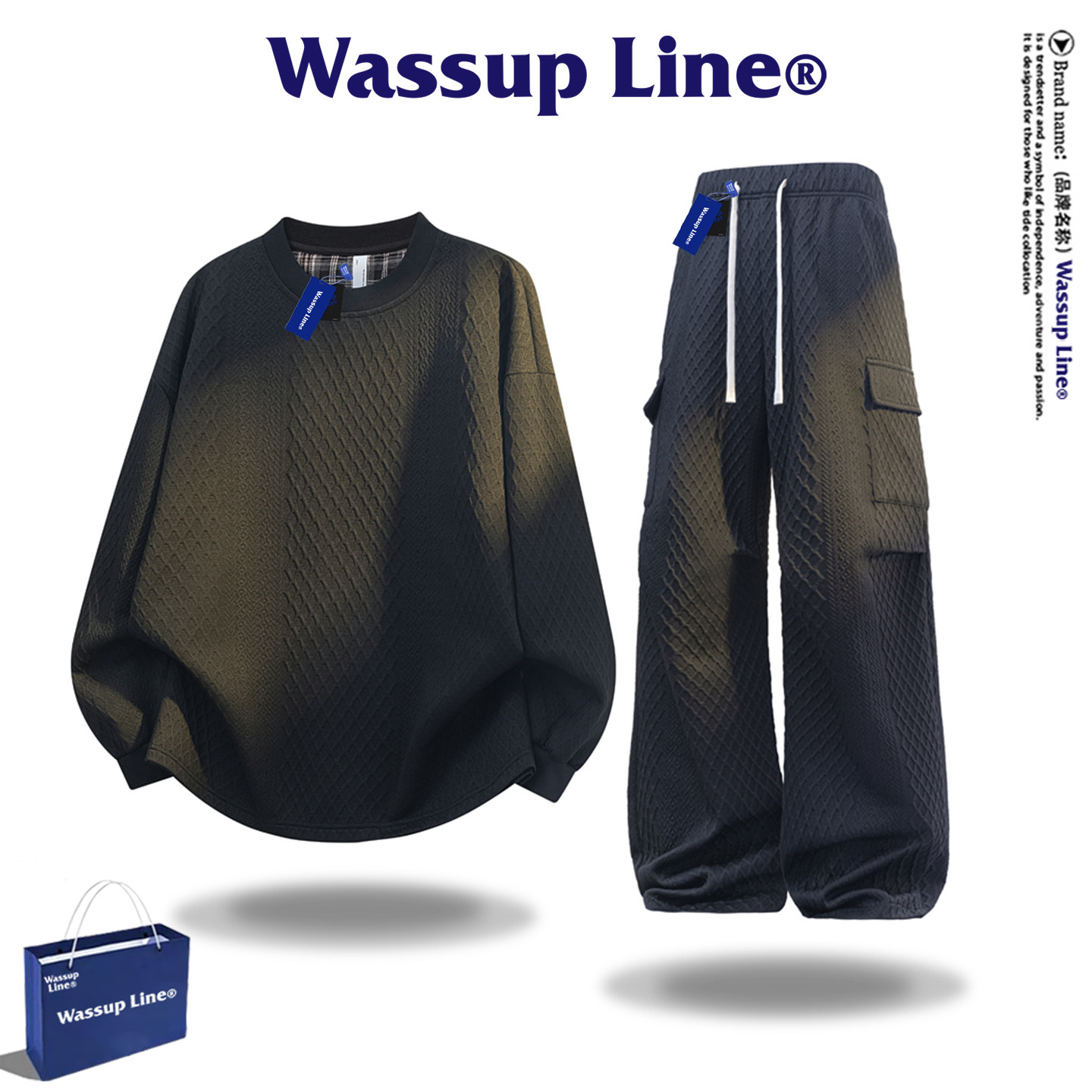 WASSUP Line潮牌美式长袖套装男款宽松卫衣男士两件套卫裤春秋季