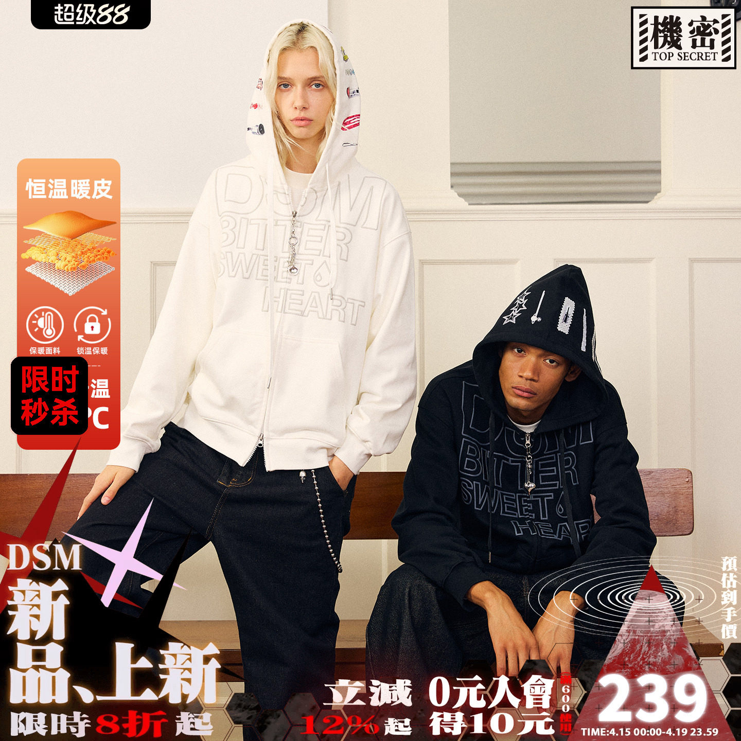 --------------------- 明星同款DONSMOKE落肩发夹开衫卫衣印花logo拉链挂饰贴纸卫衣外套 【原售价】824元 【现售价】238.82元 【推荐理由】