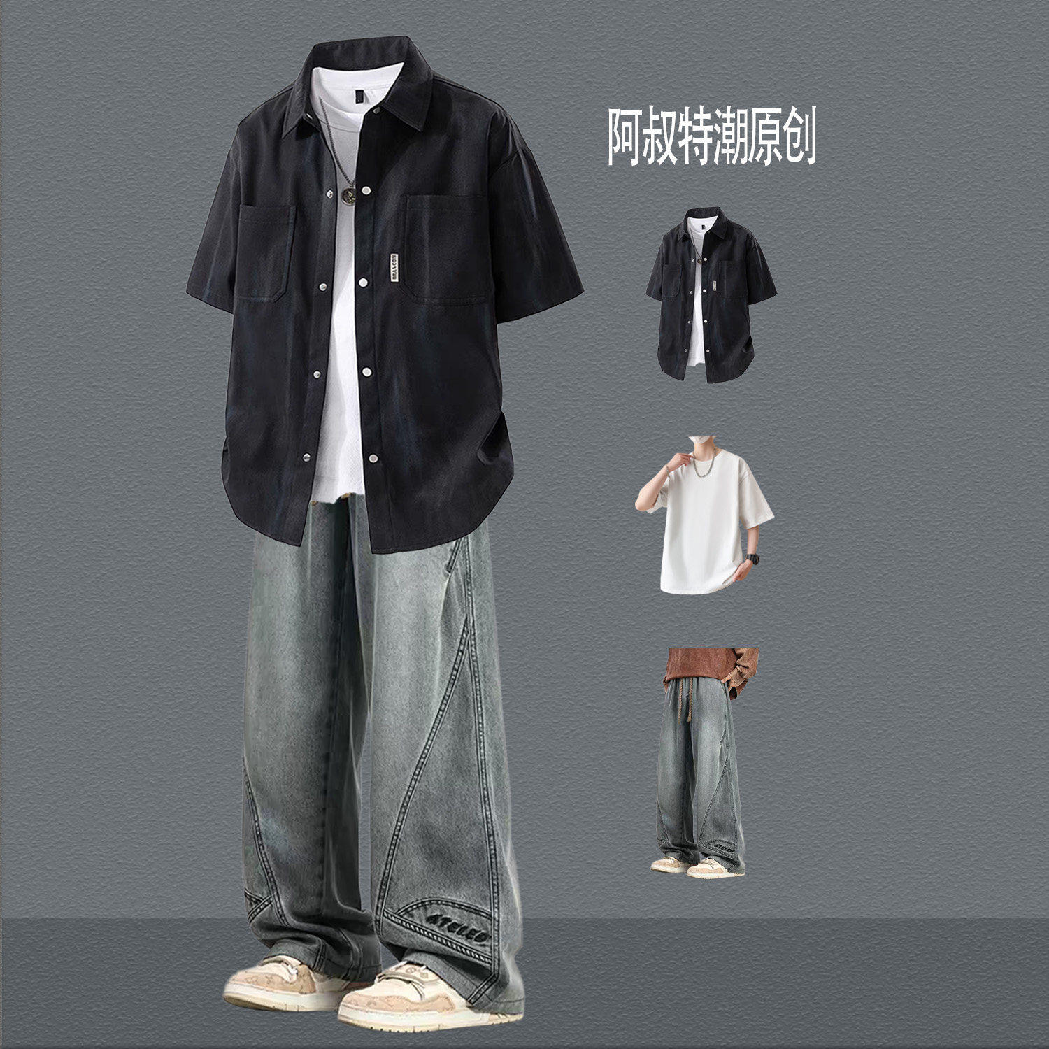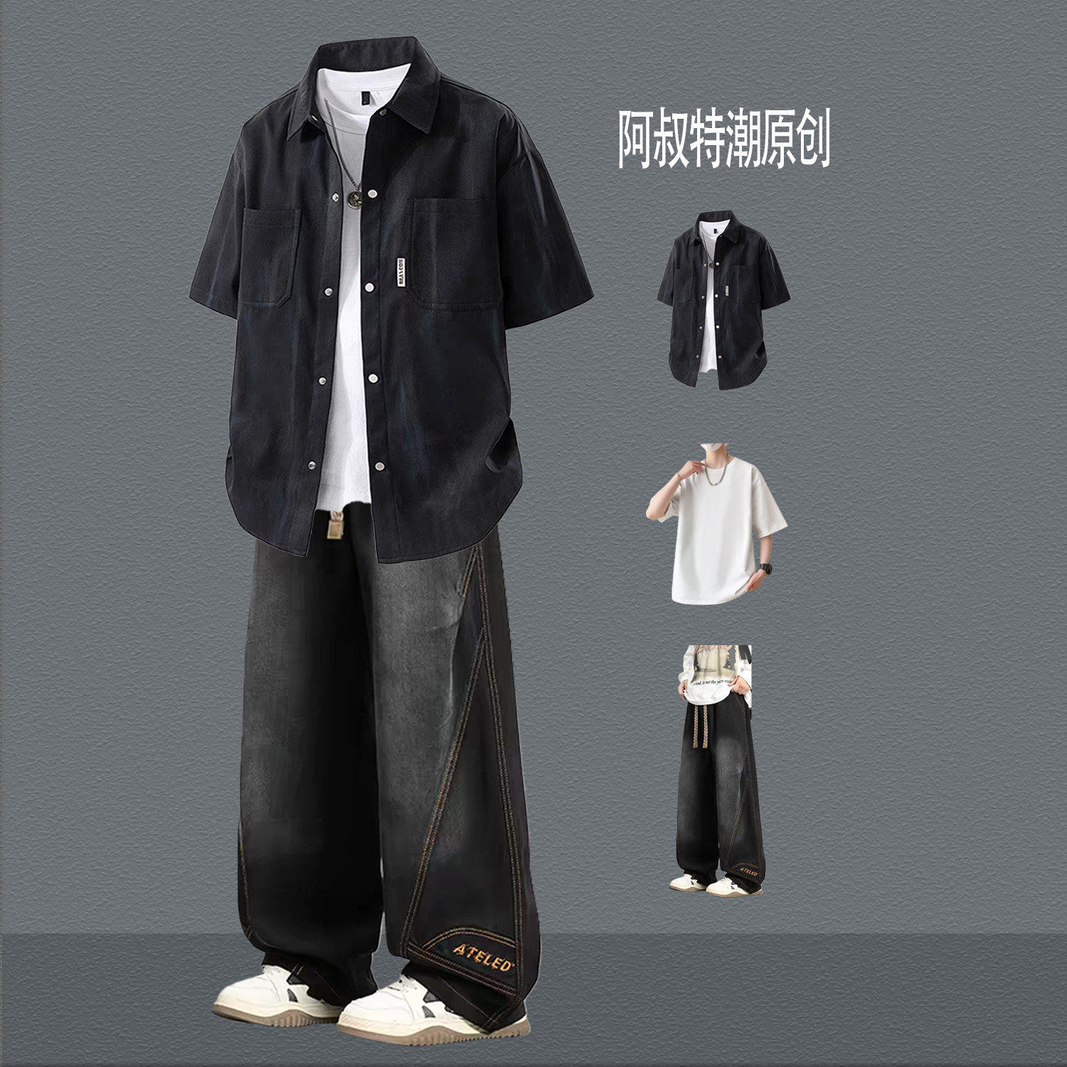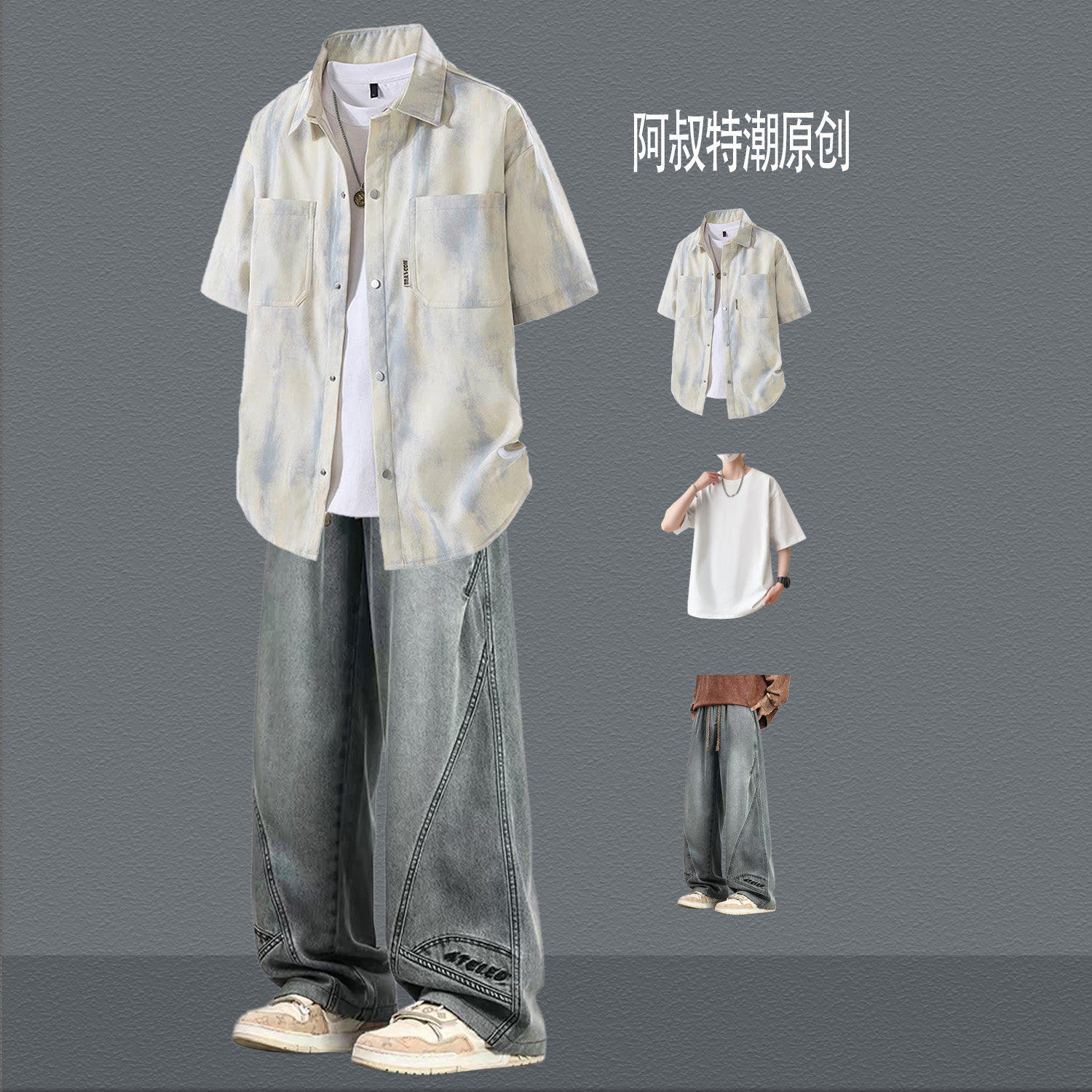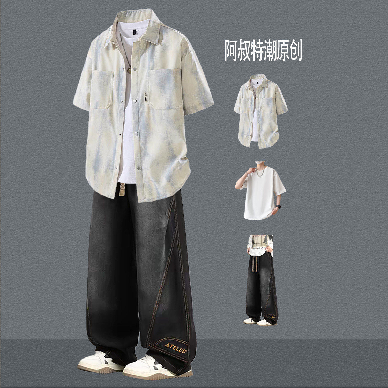 --------------------- BENTIDEA 扎染短袖衬衫男生夏季套装青少年韩版痞帅气三件套显高 【原售价】180元 【现售价】99元 【推荐理由】