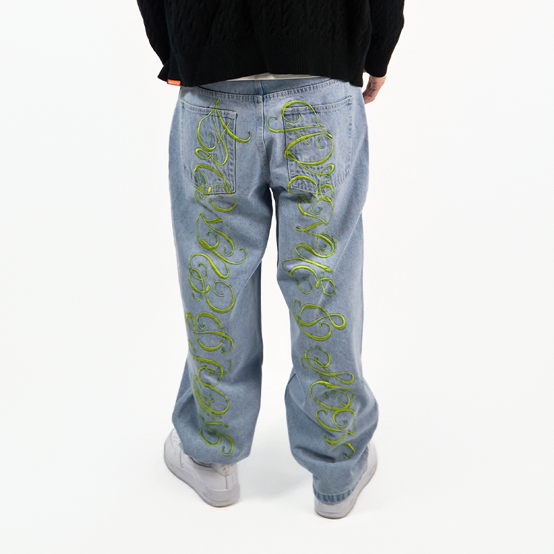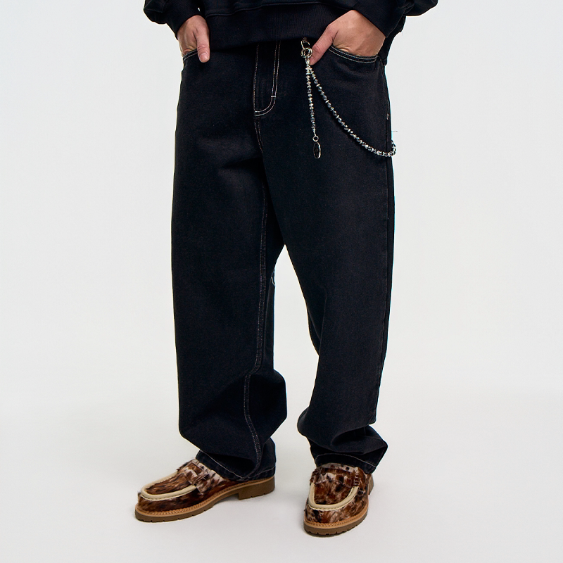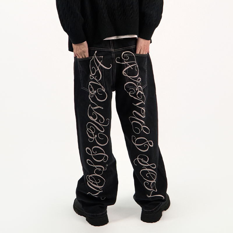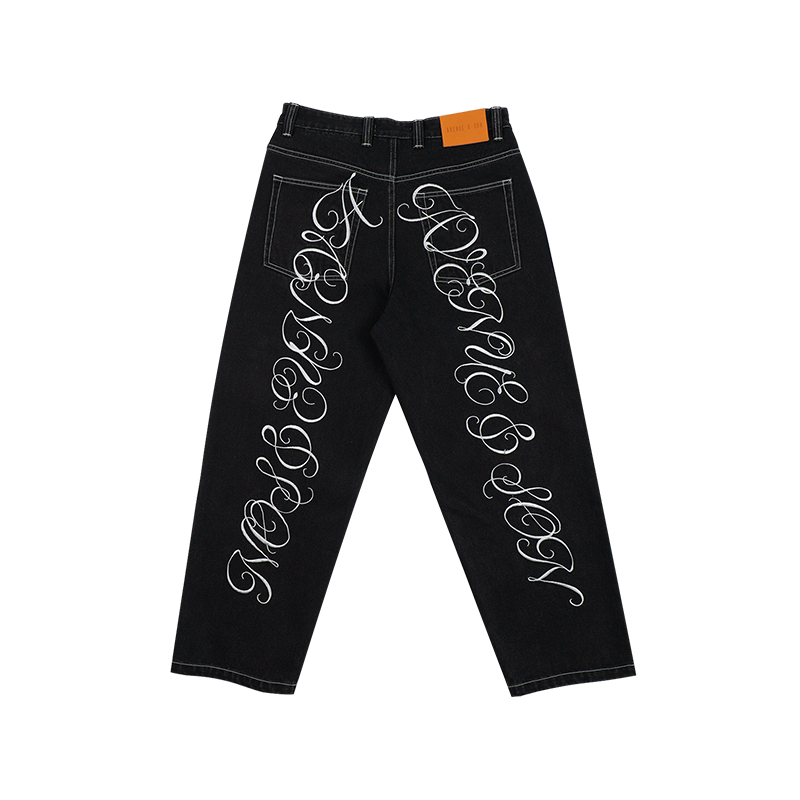 AVENUESON大道之子2025双色重磅刺绣直筒阔腿滑板街舞牛仔裤
