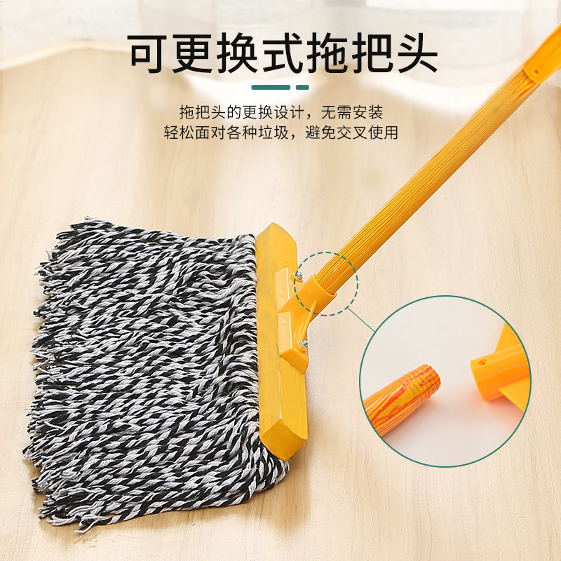 淘宝大号木杆老式拖布棉线拖把墩布尘推工厂酒店物业吸水普通拖把纯棉