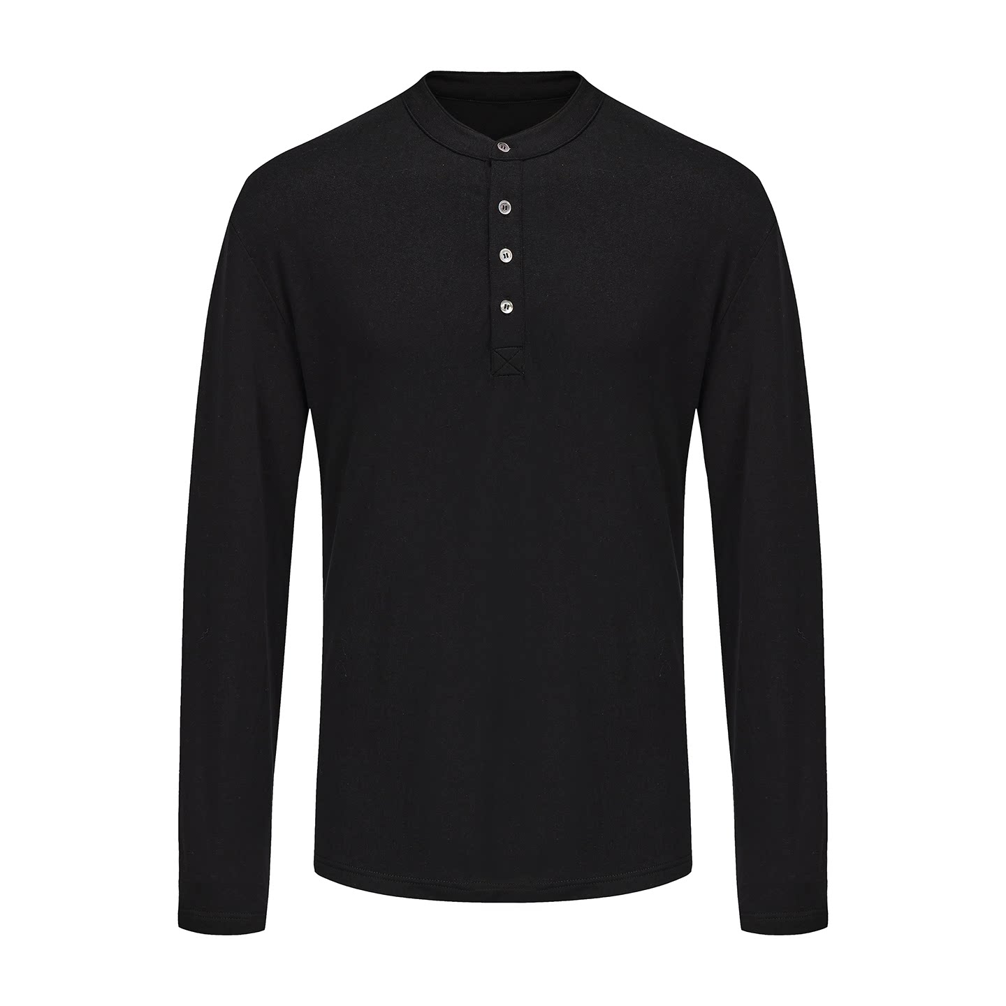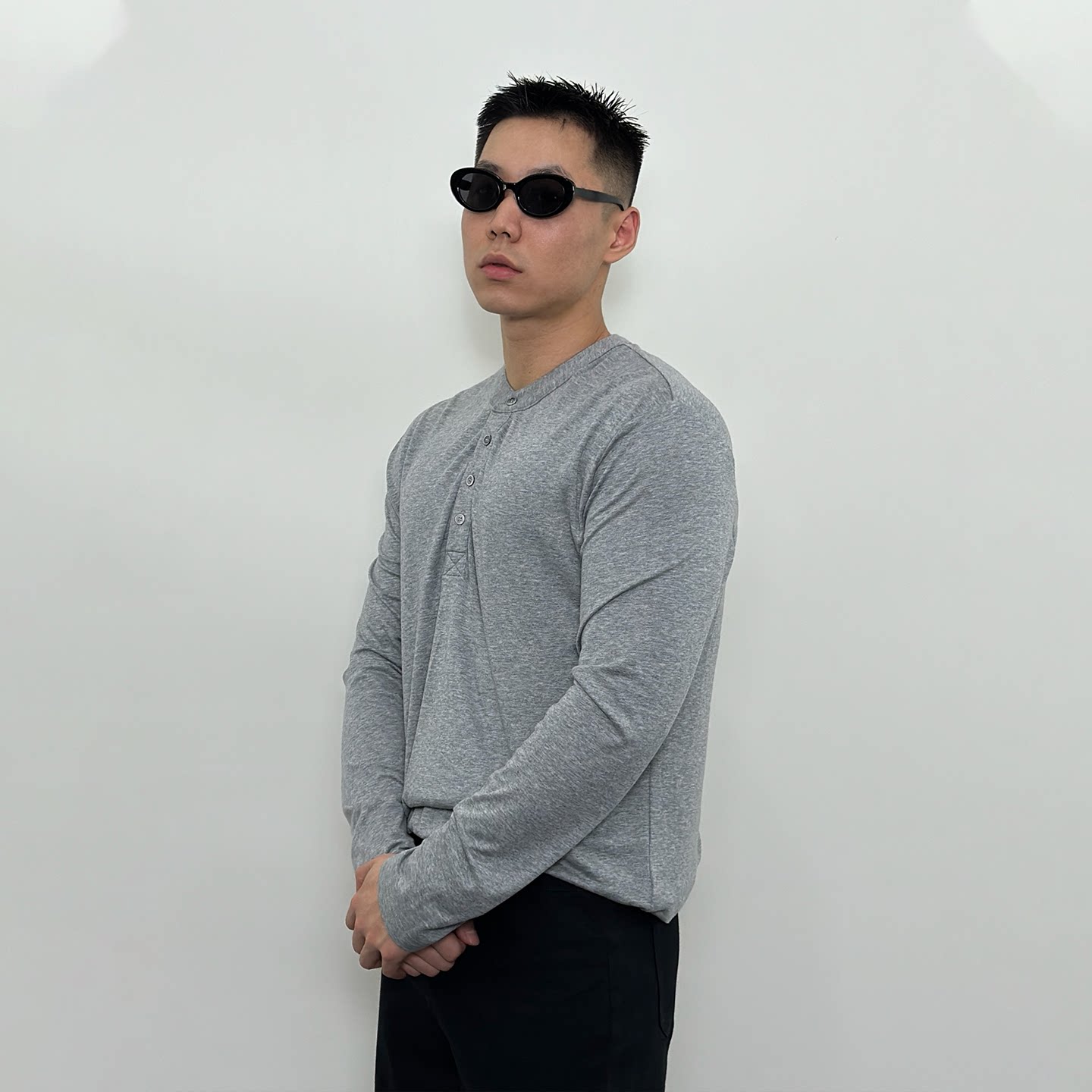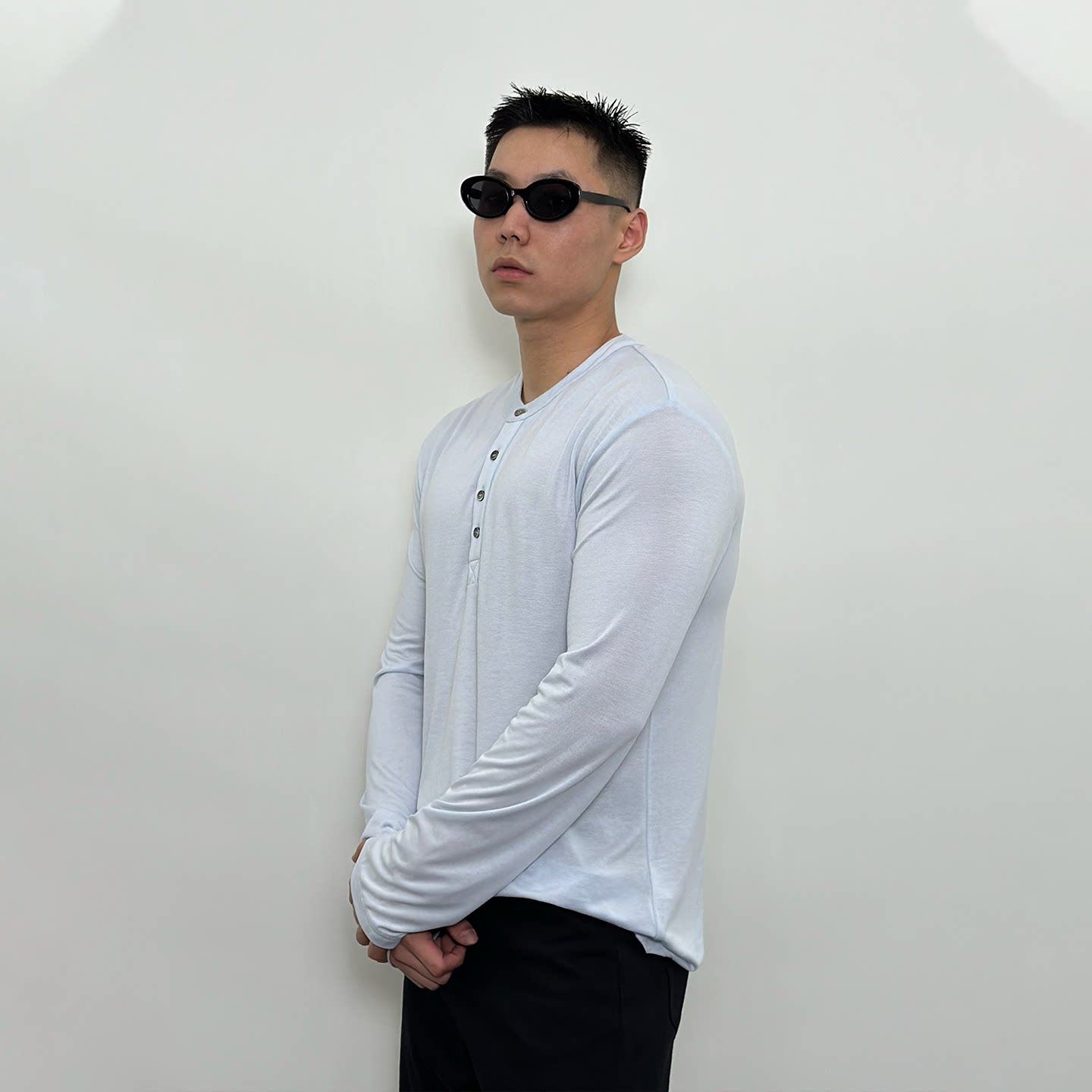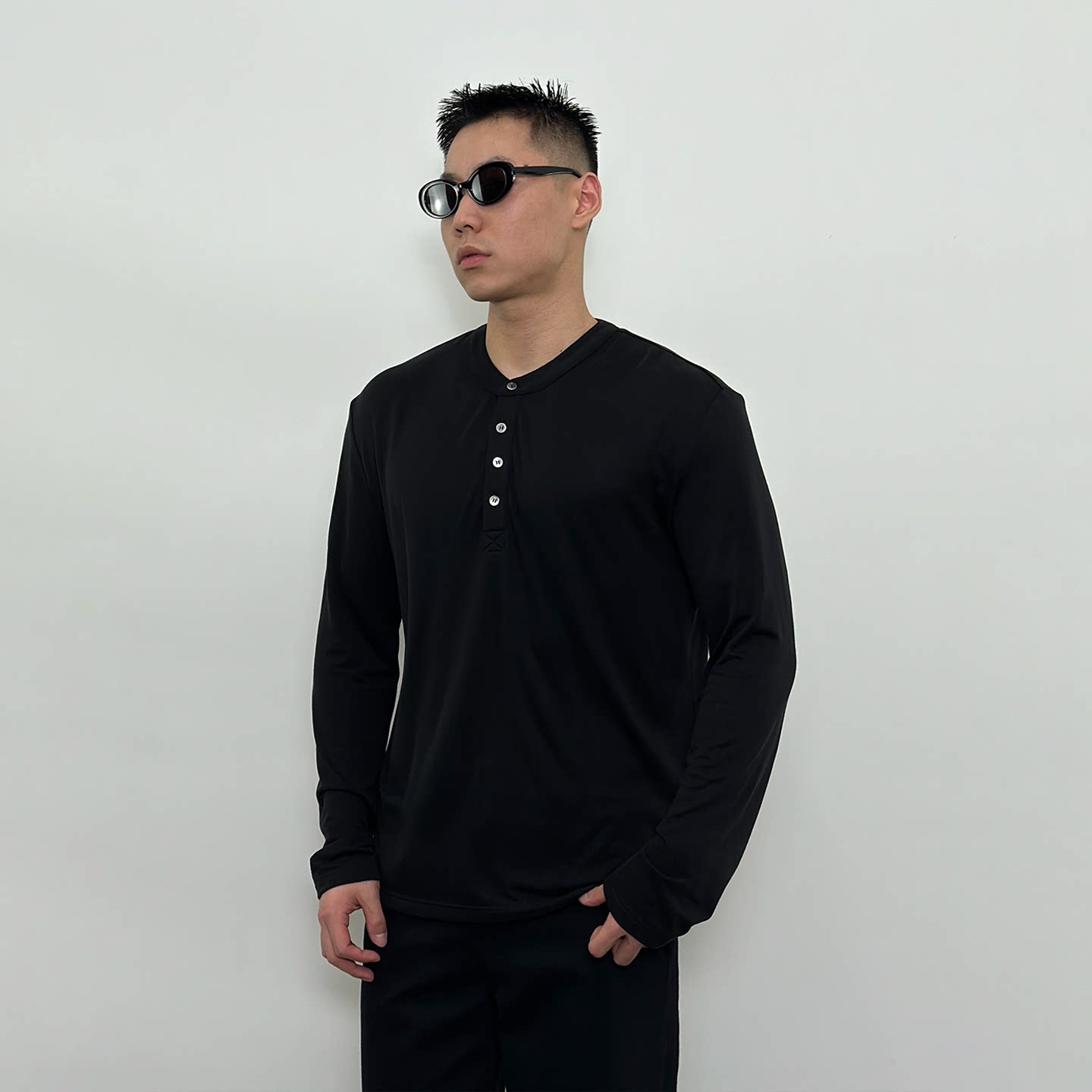 Roast lucky 天丝混纺亨利领轻薄打底长袖 软糯基础纽扣休闲T恤