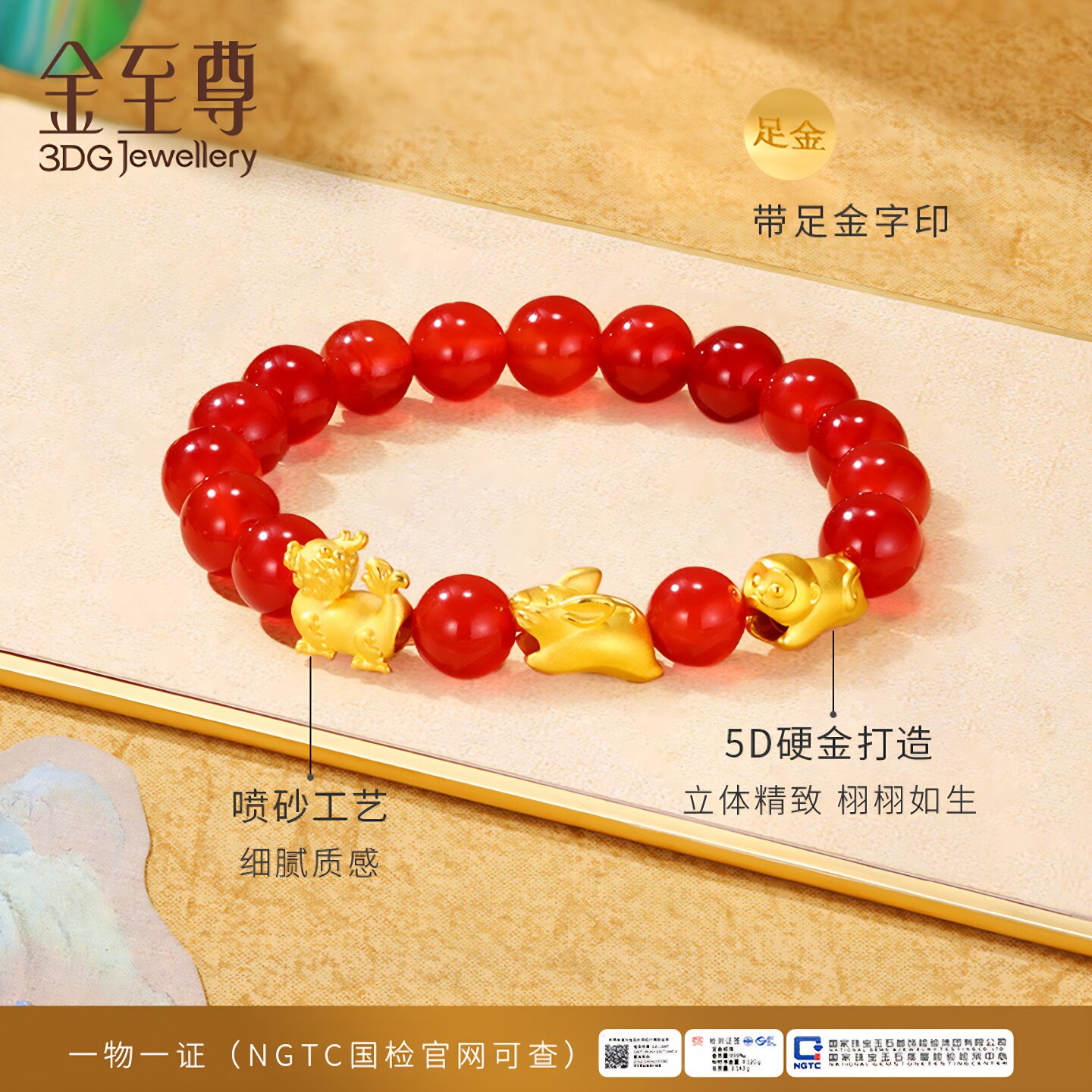 淘宝金至尊十二生肖马年黄金转运珠硬足金珠子路路通羊虎狗本命年手串