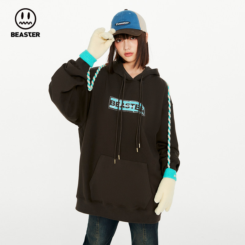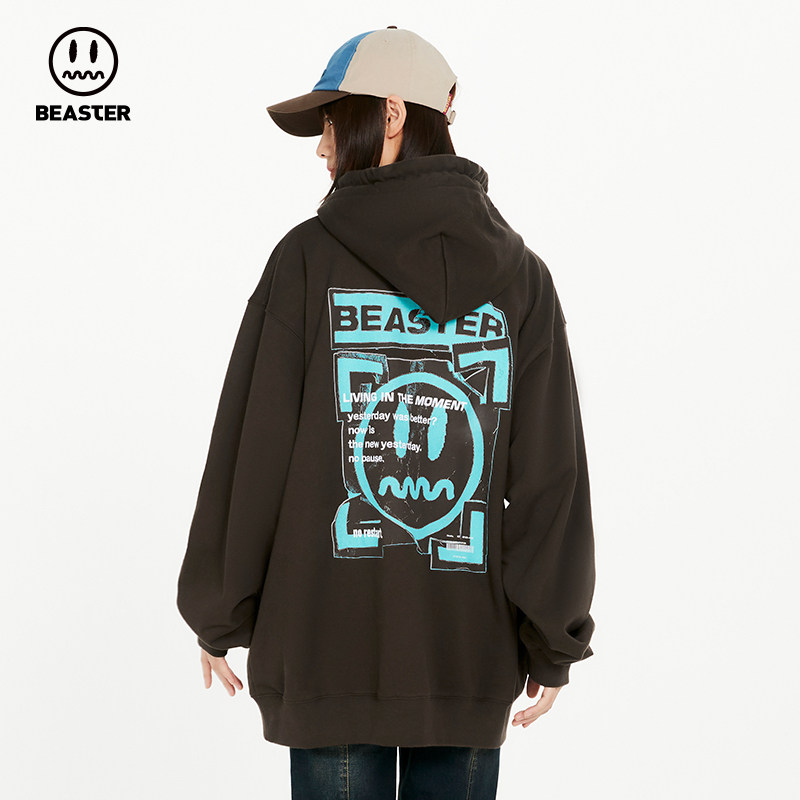 BEASTER奥莱印花抽绳连帽卫衣秋季宽松潮牌帽衫情侣款简约