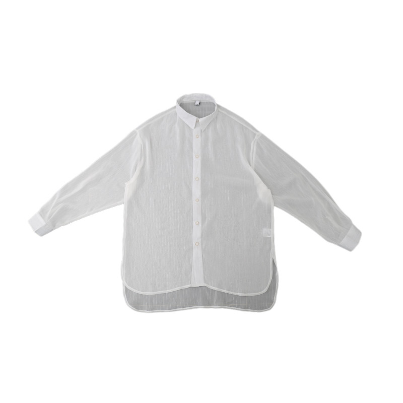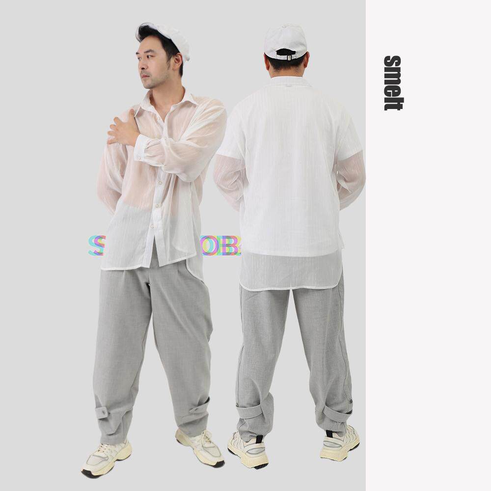 smelt炼原创免烫薄款白色透明薄纱麻料宽松开叉男士春夏防晒衬衣