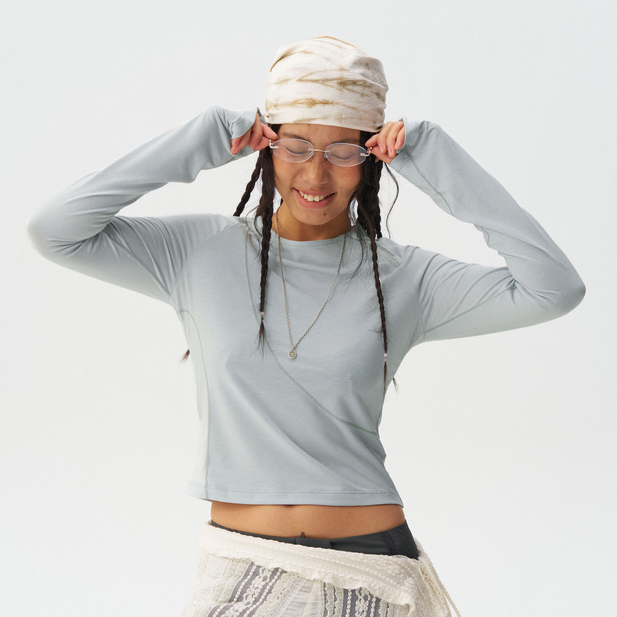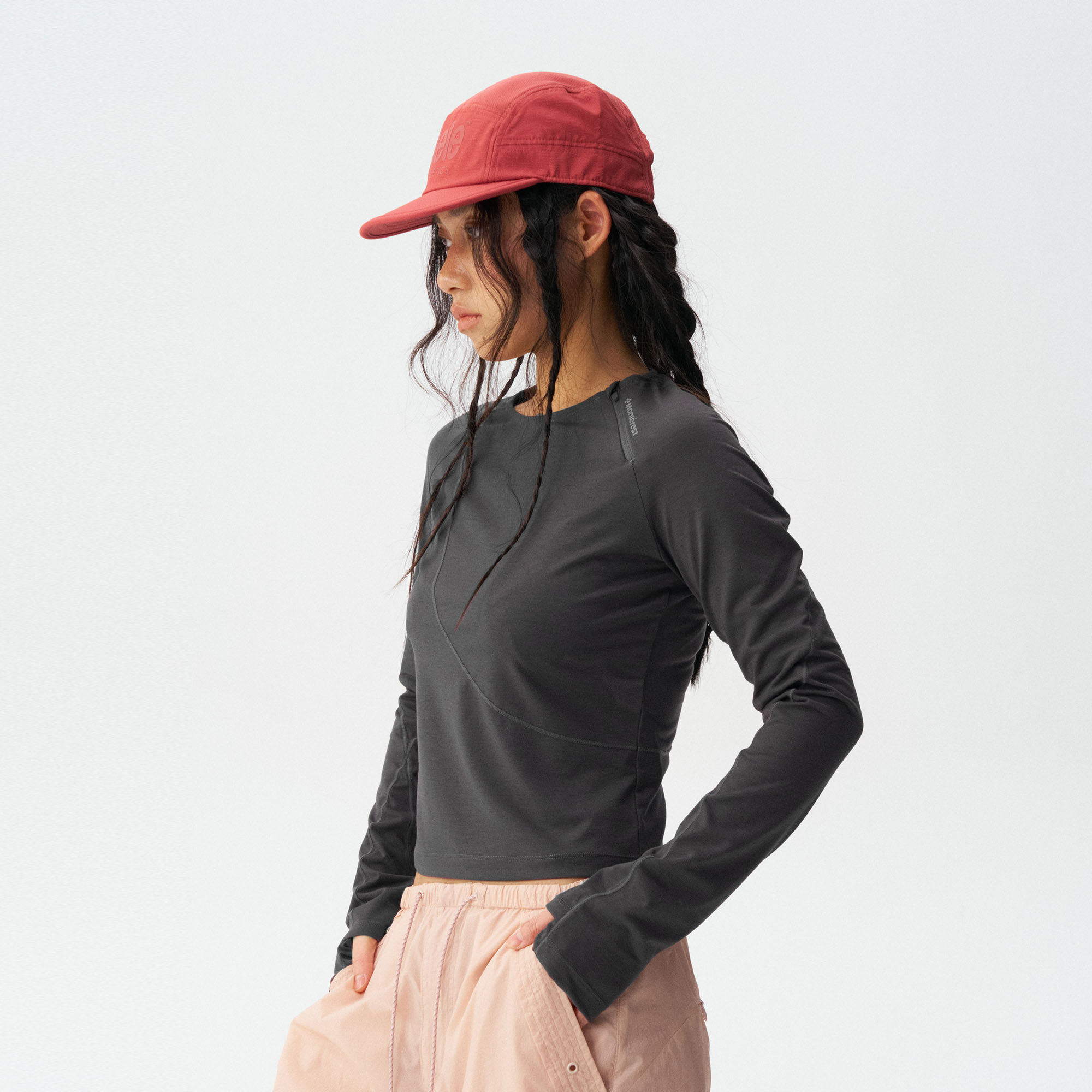 瞬时山野Monterest户外原纱3A抗菌吸湿速干分割收腰运动长袖T恤女