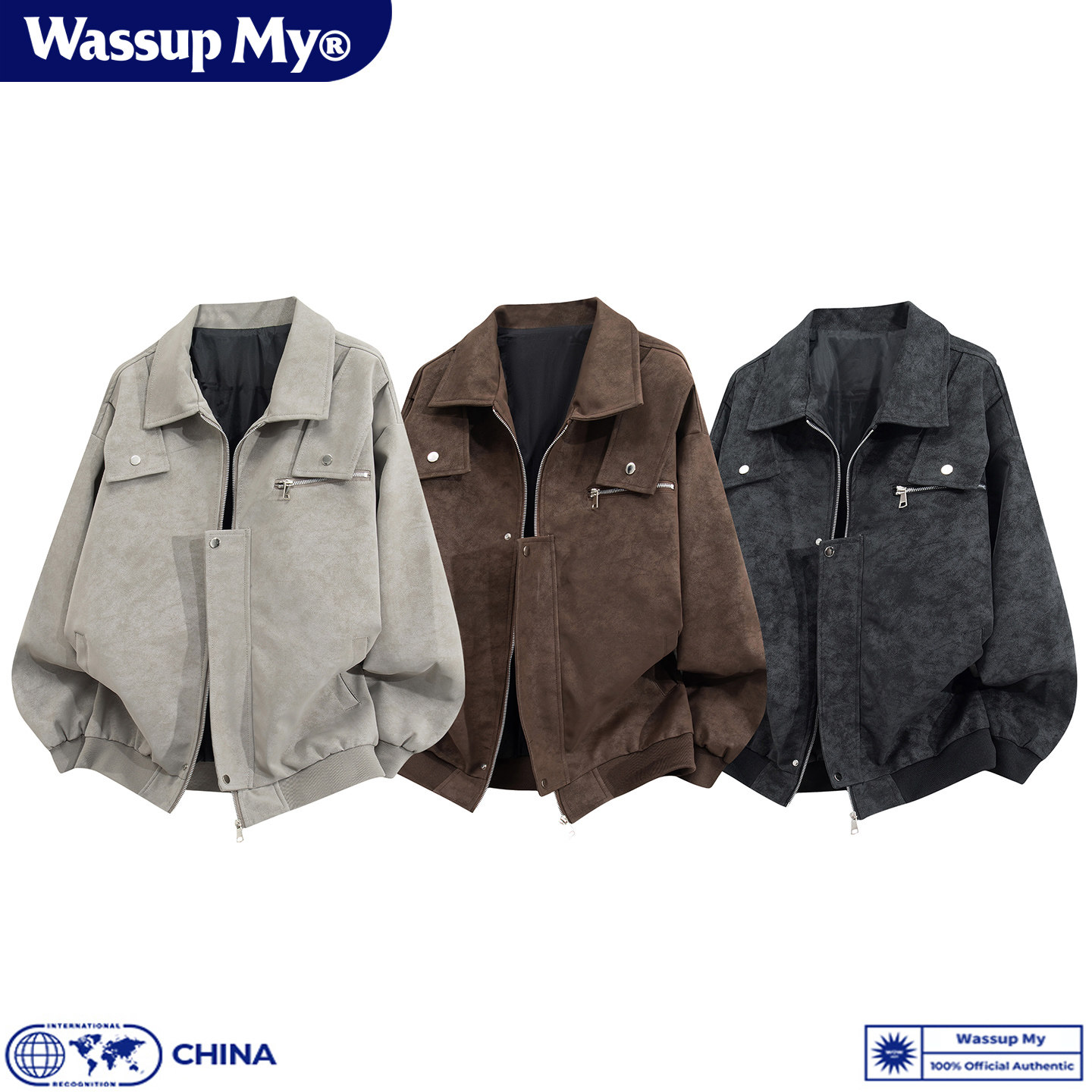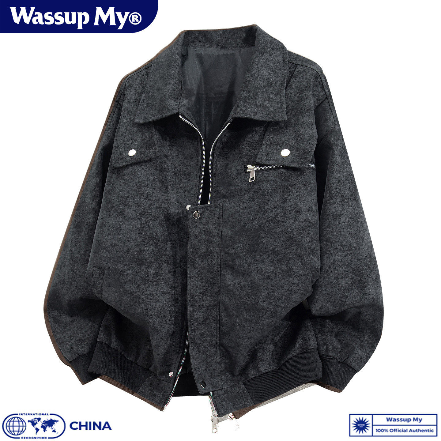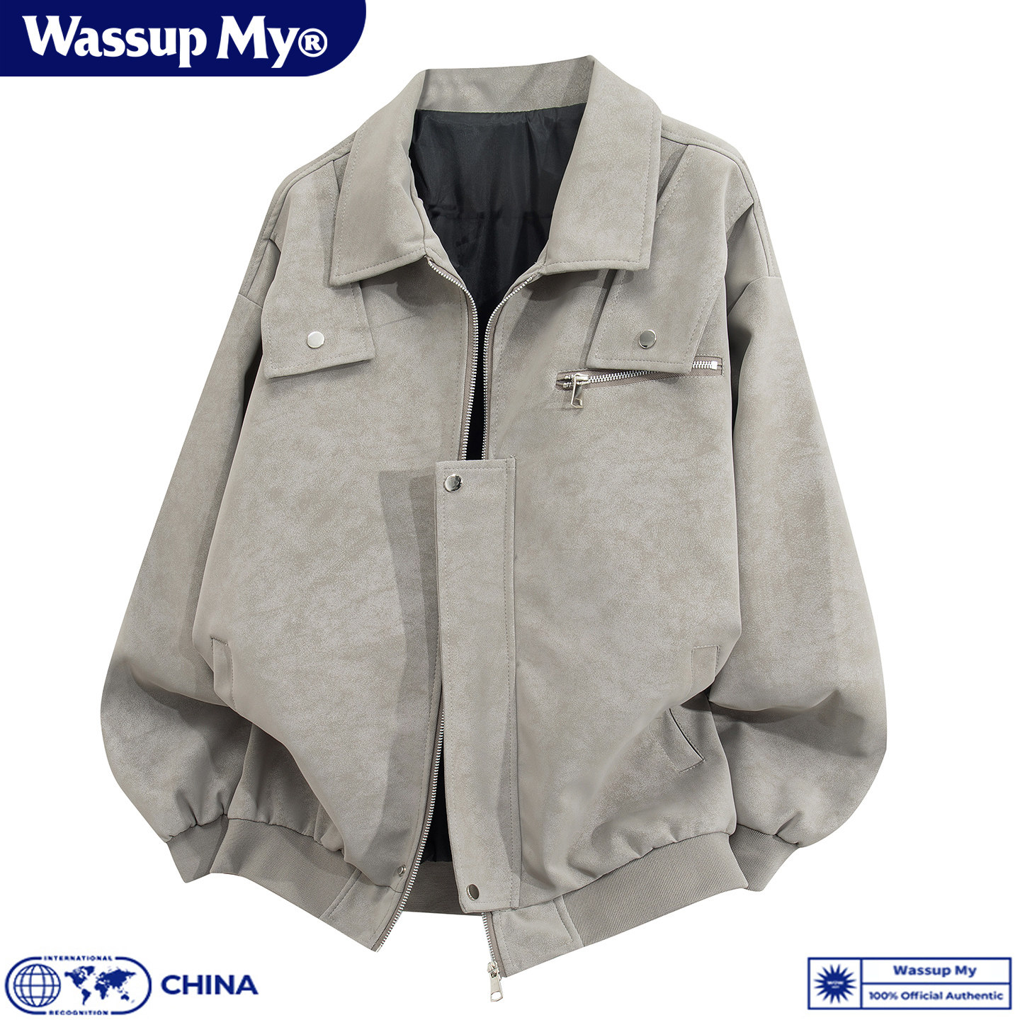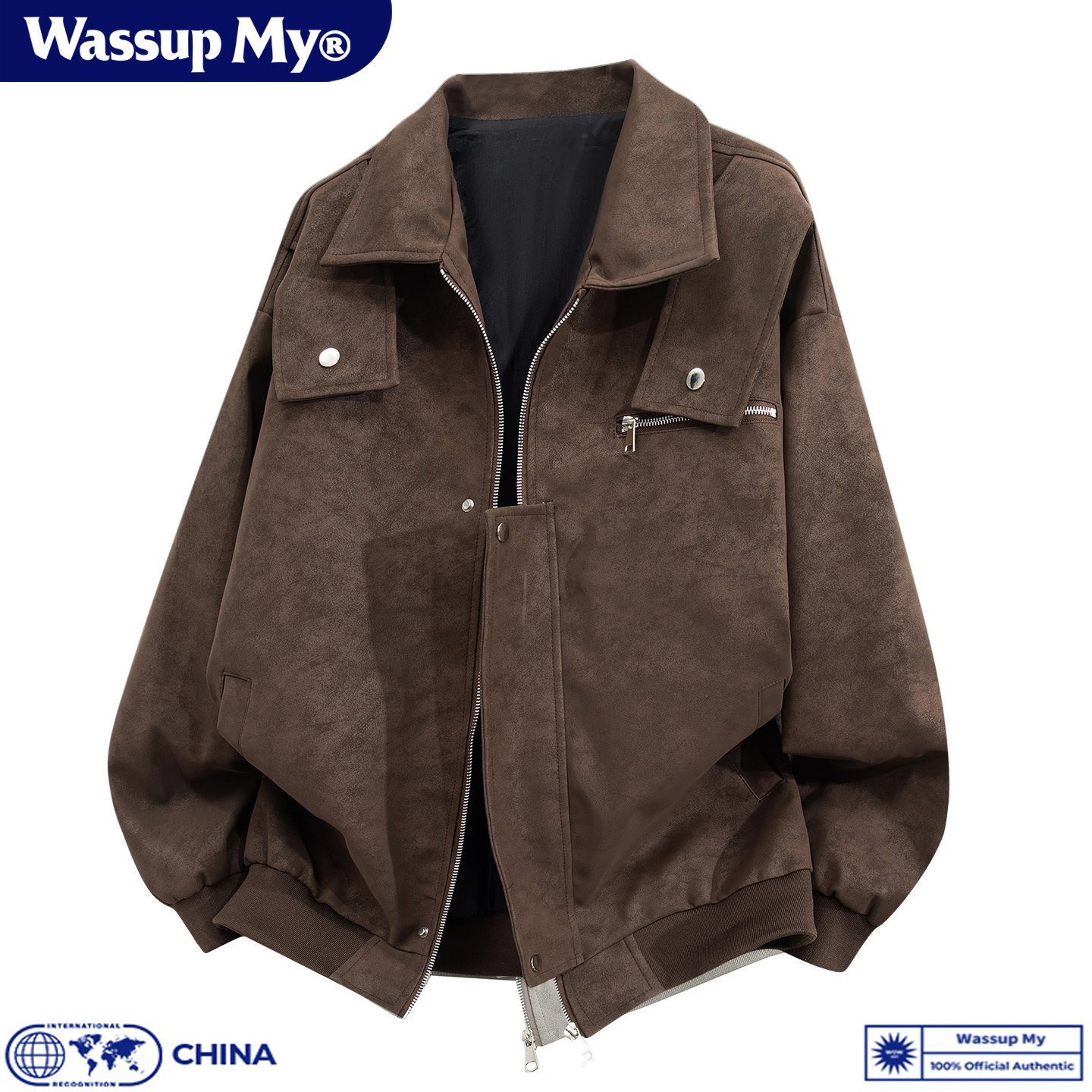Wassup MY美式复古翻领机车外套男春秋飞行员皮夹克高级感皮衣潮