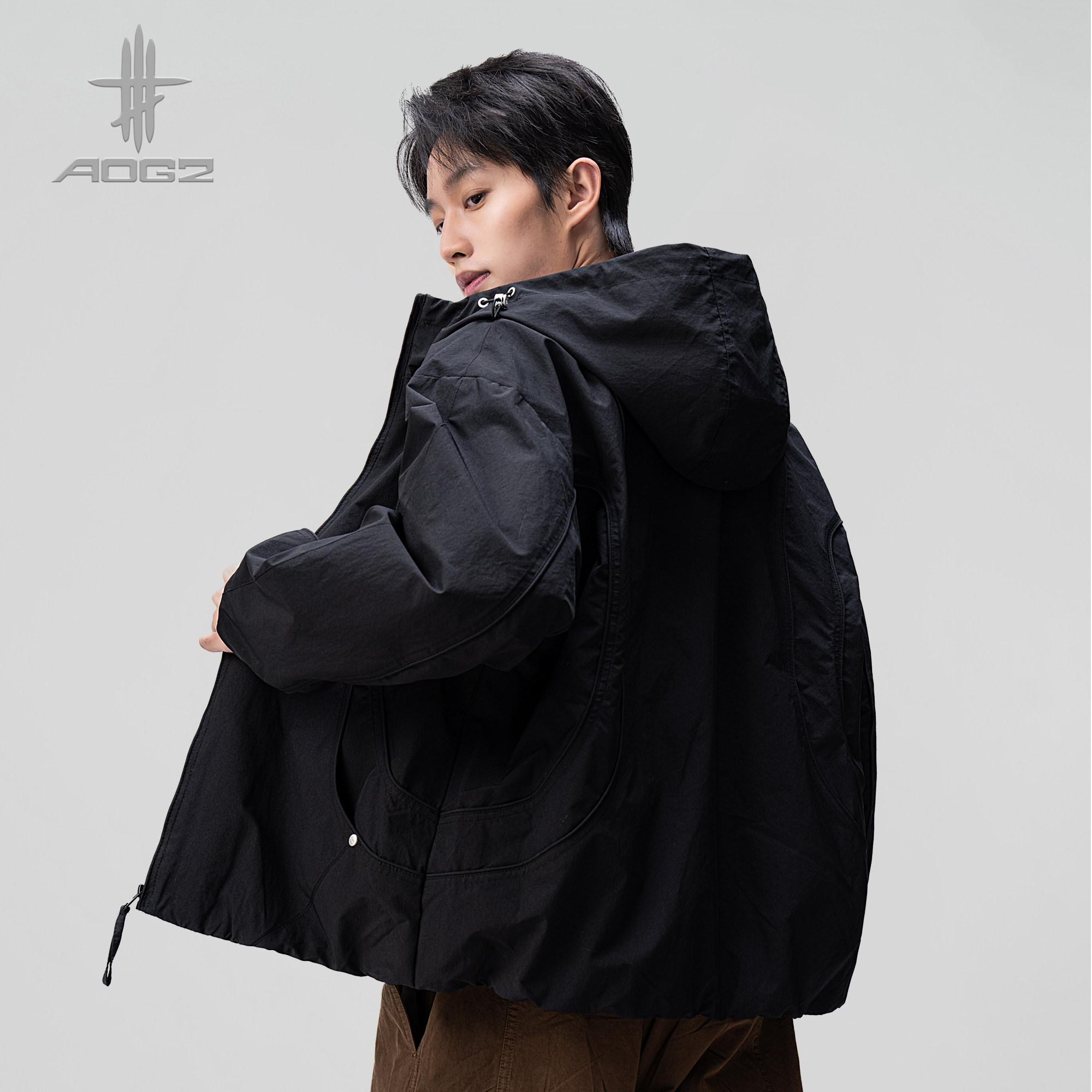 AOGZ美式工装连帽夹克2026新款春季男女宽松潮牌休闲百搭冲锋外套