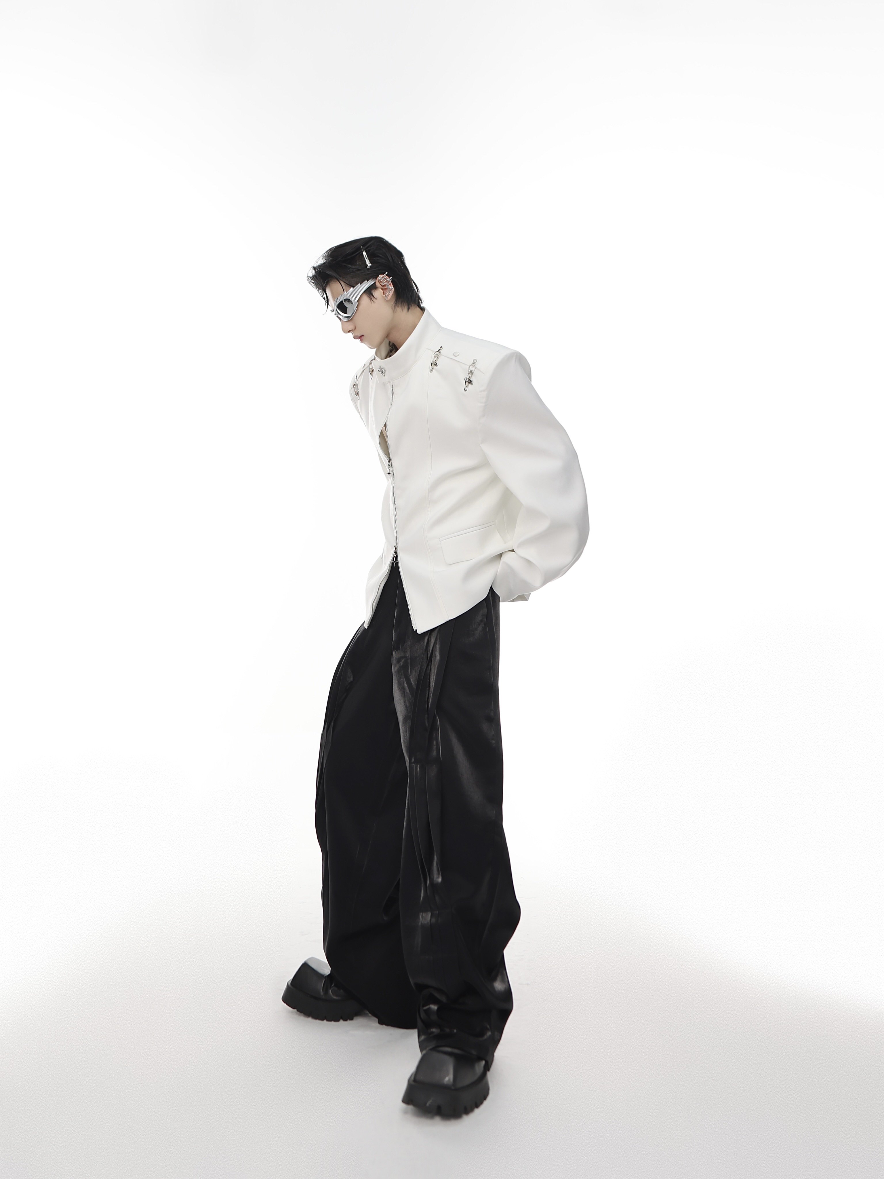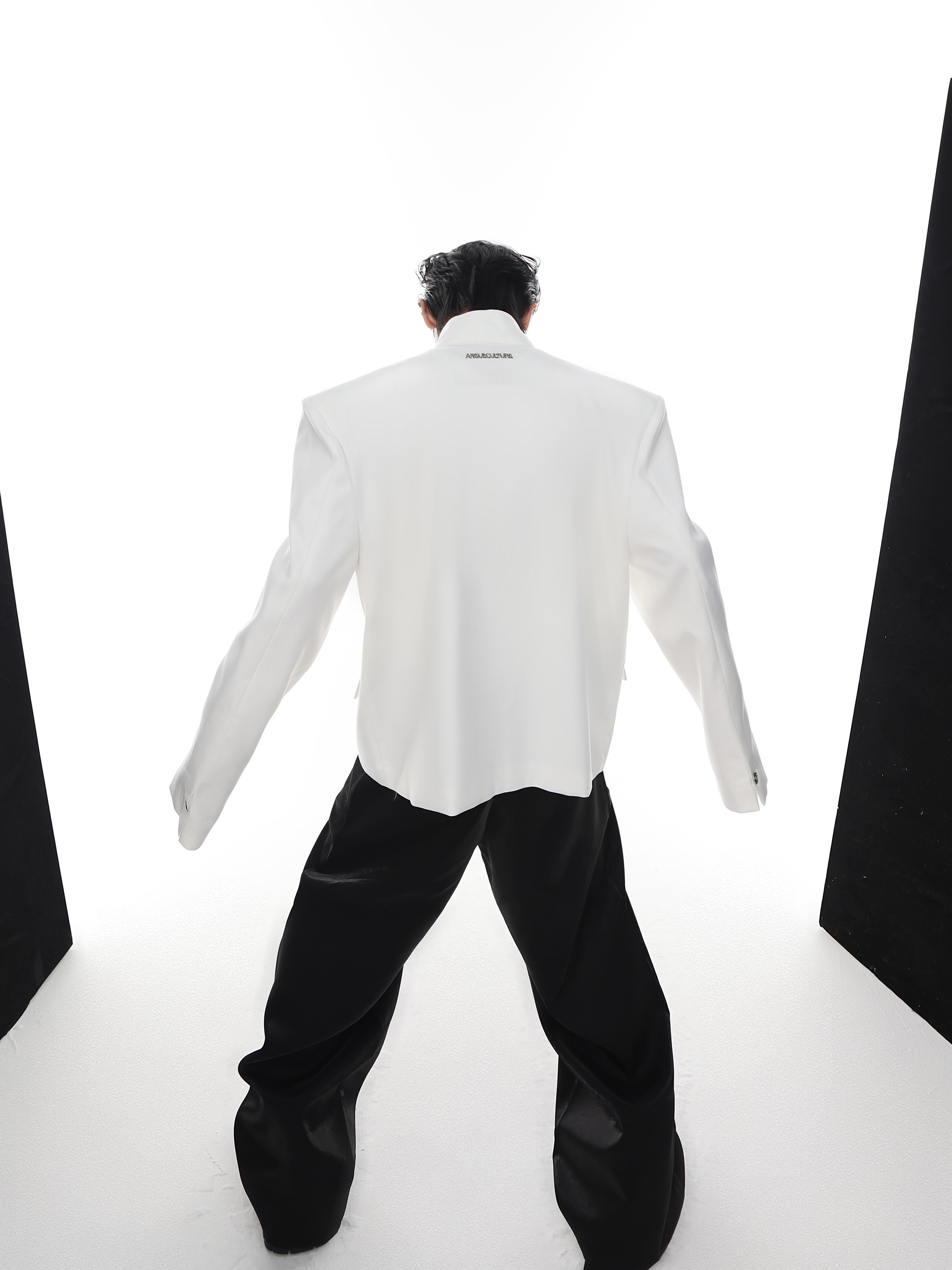 ArguE小众解构金属飞机扣设计西装外套半高领垫肩西服夹克