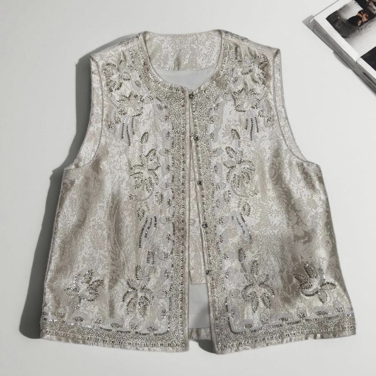 --------------------- 云禾锦新春款重工钉珠提花刺绣亮片女新中式国风奢华高奢马甲上衣 【原售价】329元 【现售价】329元 【推荐理由】
