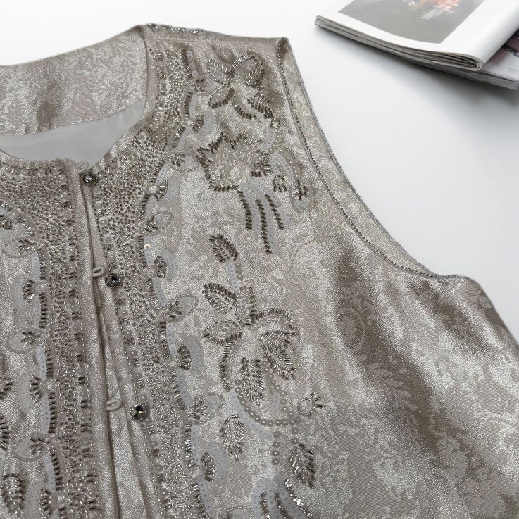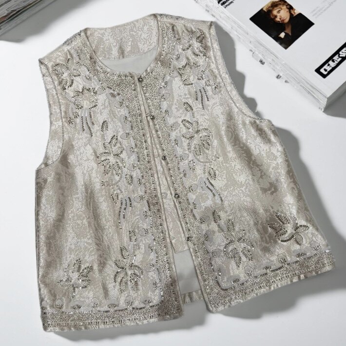 云禾锦新春款重工钉珠提花刺绣亮片女新中式国风奢华高奢马甲上衣