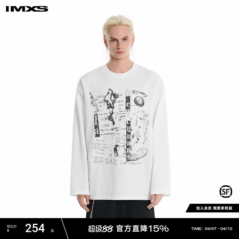 淘宝【田总同款】IMXS美式印花慵懒圆领白色男女长袖T恤2025年新款