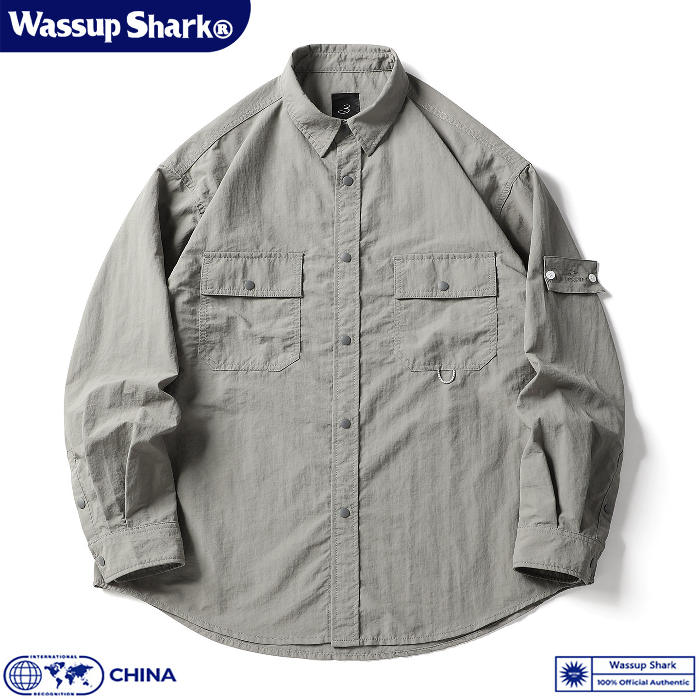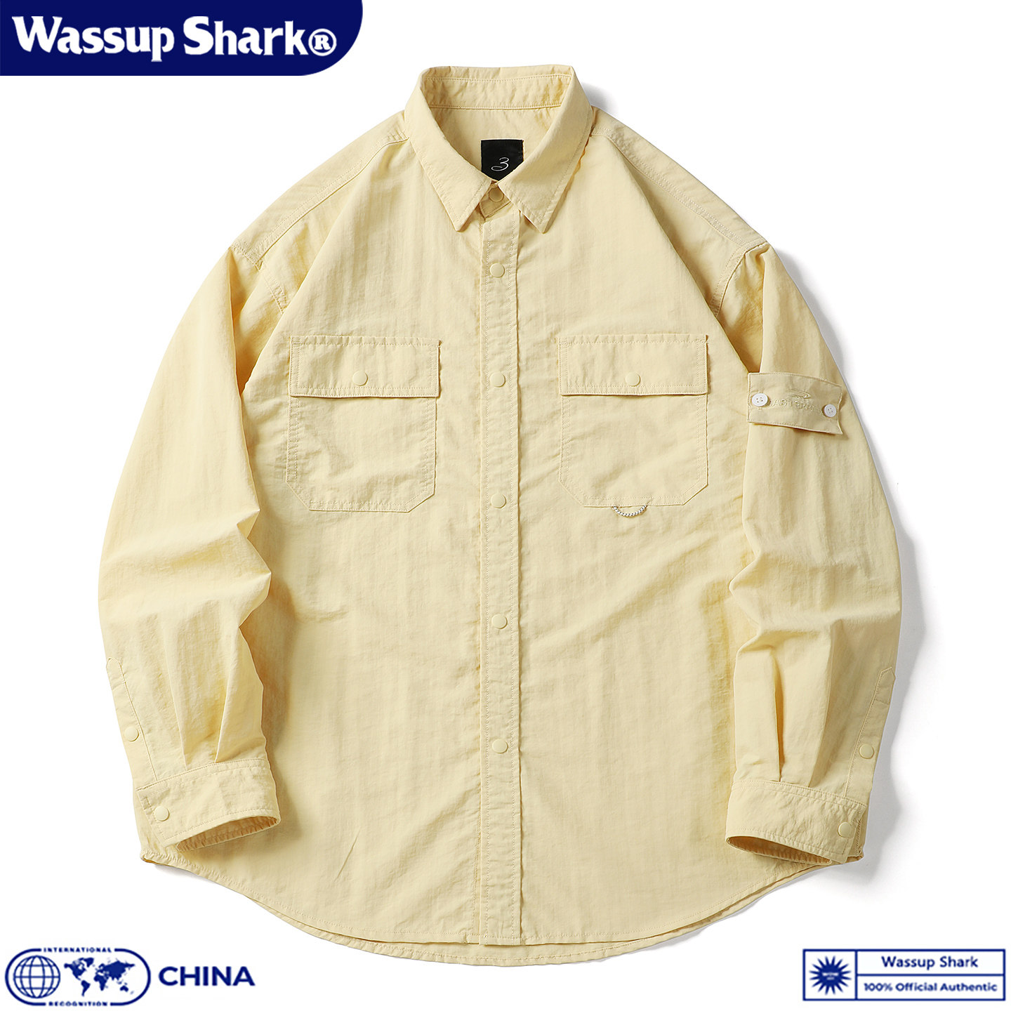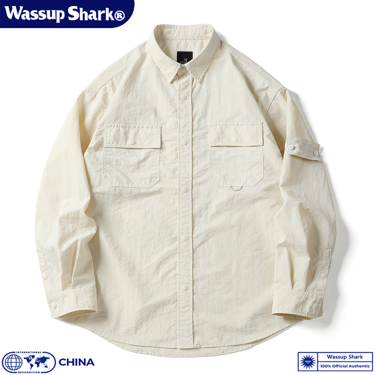 Wassup Shark日系复古速干工装长袖衬衫男秋季休闲宽松百搭上衣潮