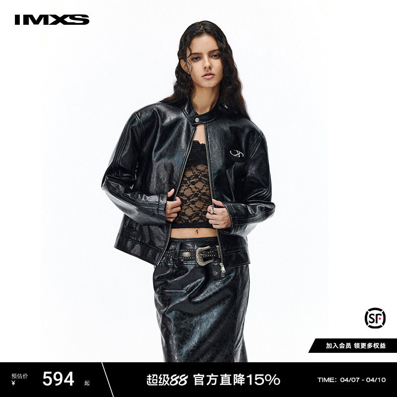 IMXS【明星同款】双开门 机车皮衣美式pu皮夹克垫肩外套