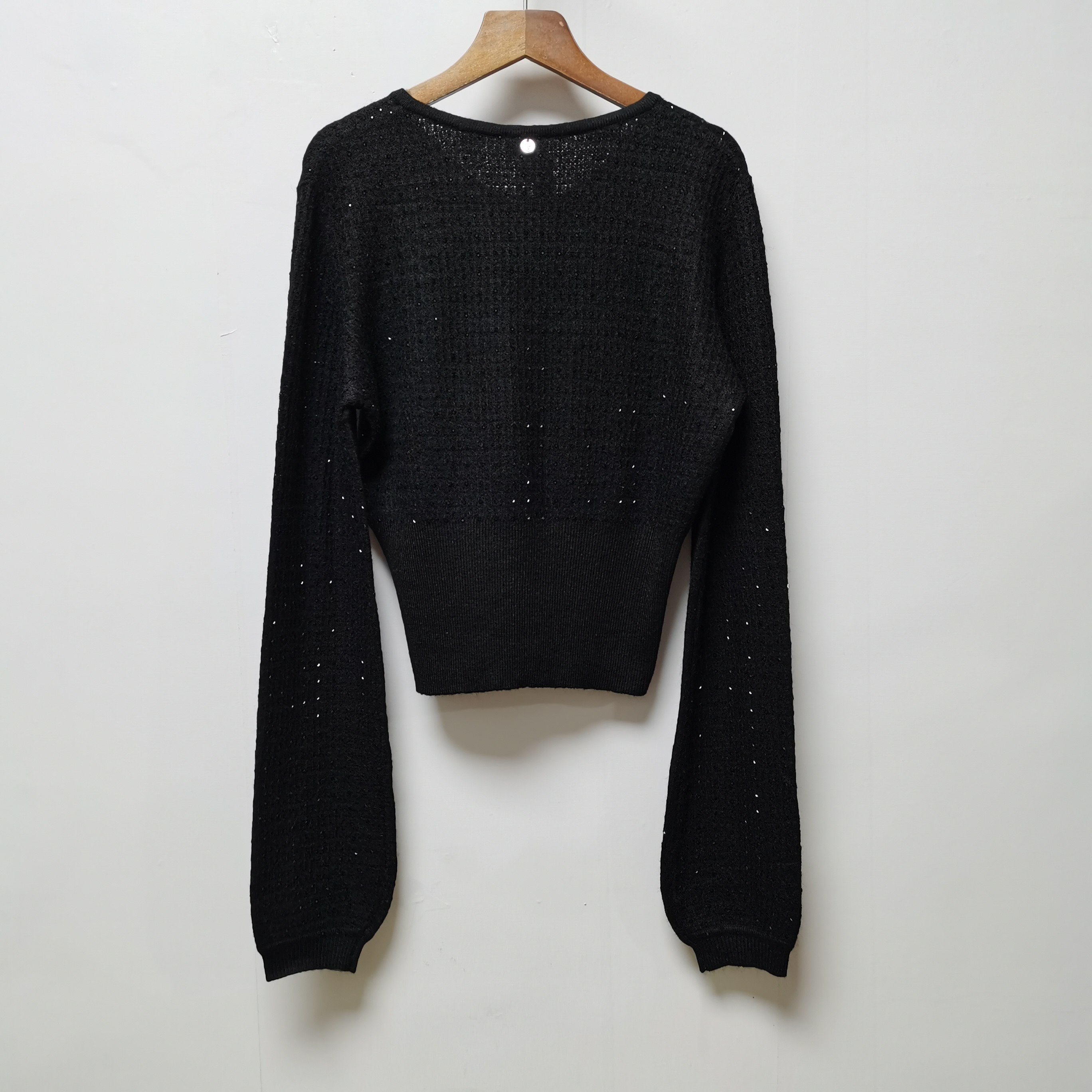 --------------------- 橘2025春装新款高腰显瘦镂空重工烫钻高感针织灯笼袖羊毛衫女洋气 【原售价】79元 【现售价】71.1元 【推荐理由】