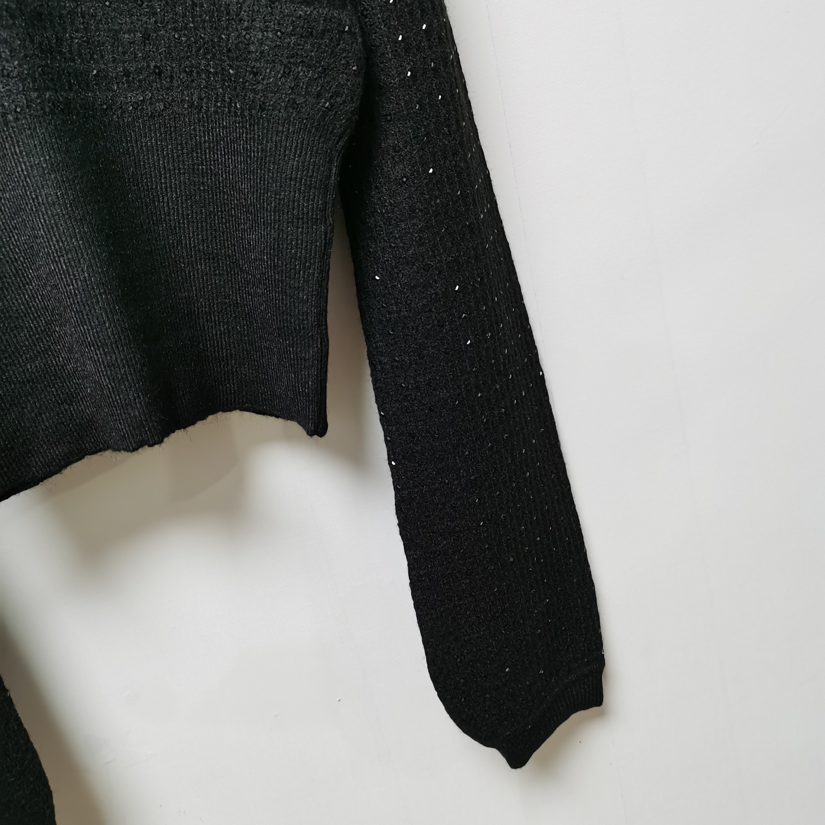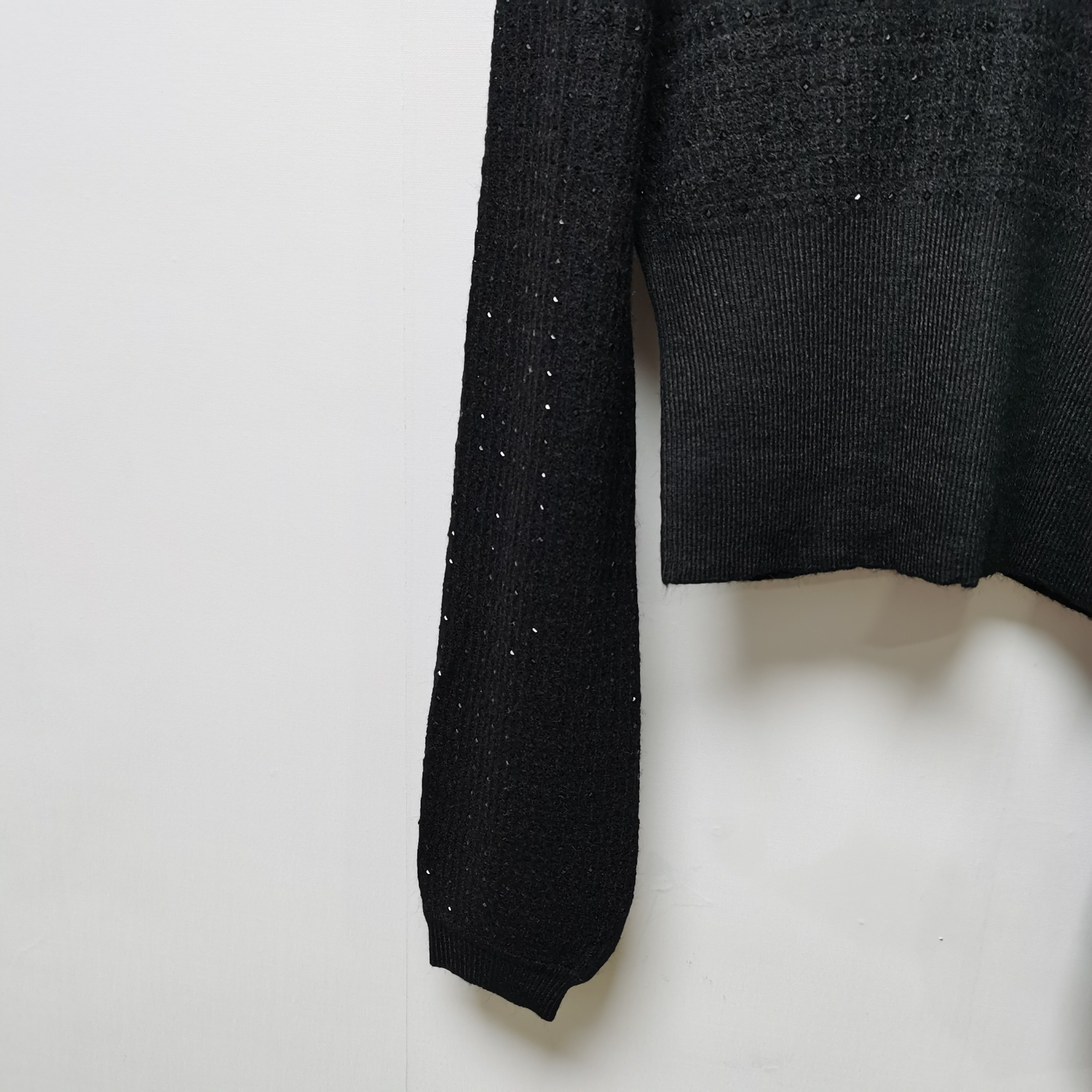 橘2025春装新款高腰显瘦镂空重工烫钻高感针织灯笼袖羊毛衫女洋气